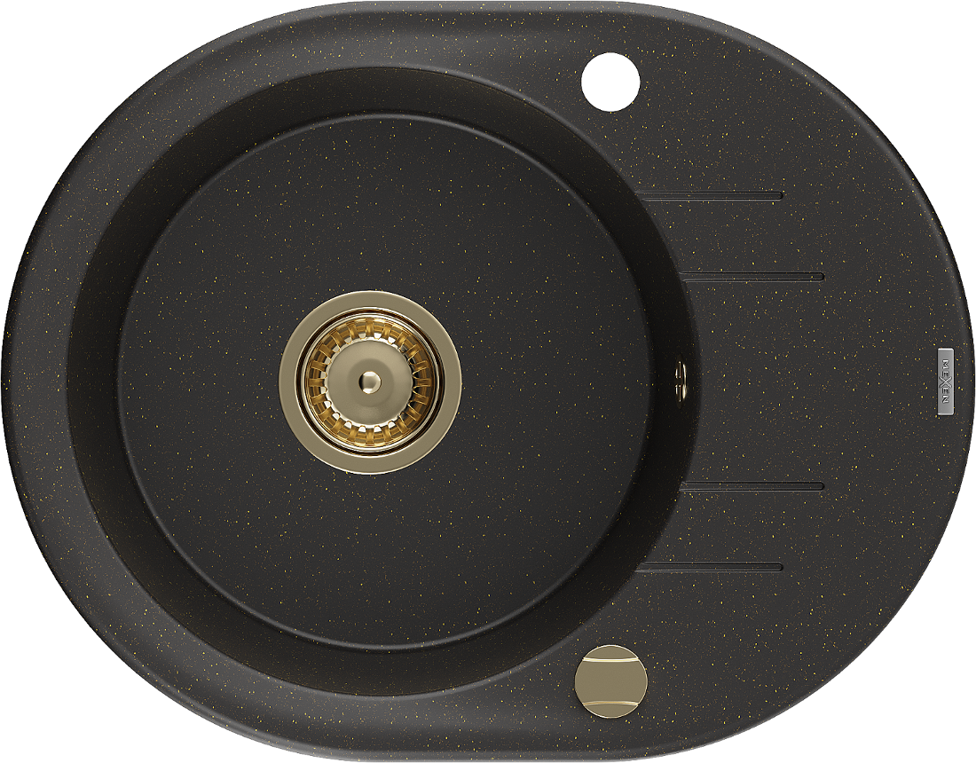 Mexen Kevin zlewozmywak granitowy 1-komorowy z ociekaczem 586 x 458 mm, czarny/złoty metalik, syfon złoty - 6517581005-75-G