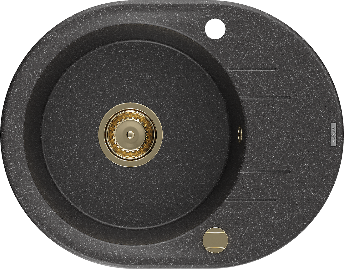 Mexen Kevin zlewozmywak granitowy 1-komorowy z ociekaczem 586 x 458 mm, czarny nakrapiany, syfon złoty - 6517581005-76-G