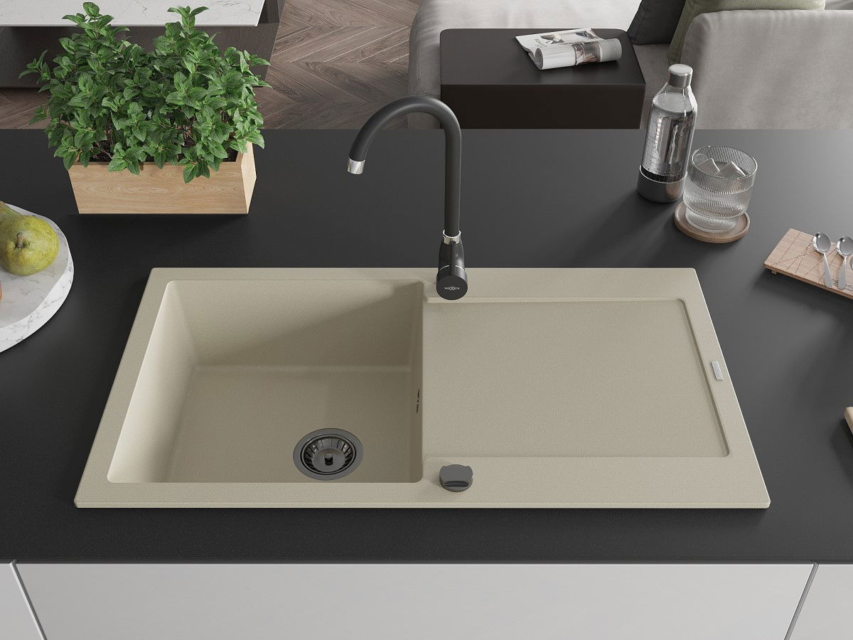 Mexen Leo zlewozmywak granitowy 1-komorowy z ociekaczem 900 x 500 mm, beżowy, syfon czarny - 6501901010-69-B