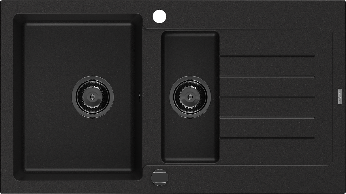 Mexen Matias zlewozmywak granitowy 1,5-komorowy z ociekaczem 900 x 505 mm, czarny, syfon czarny - 6502901505-77-B