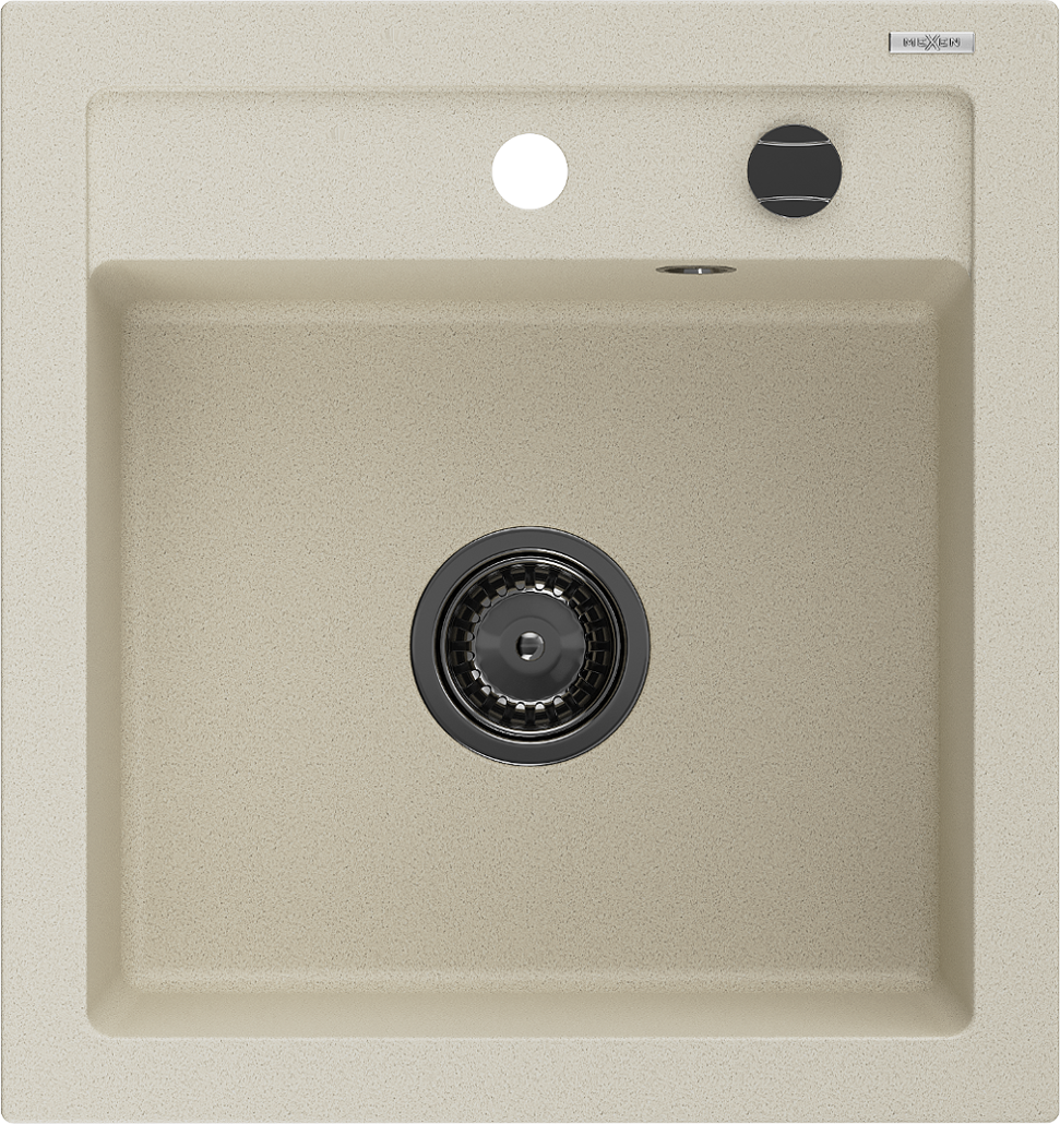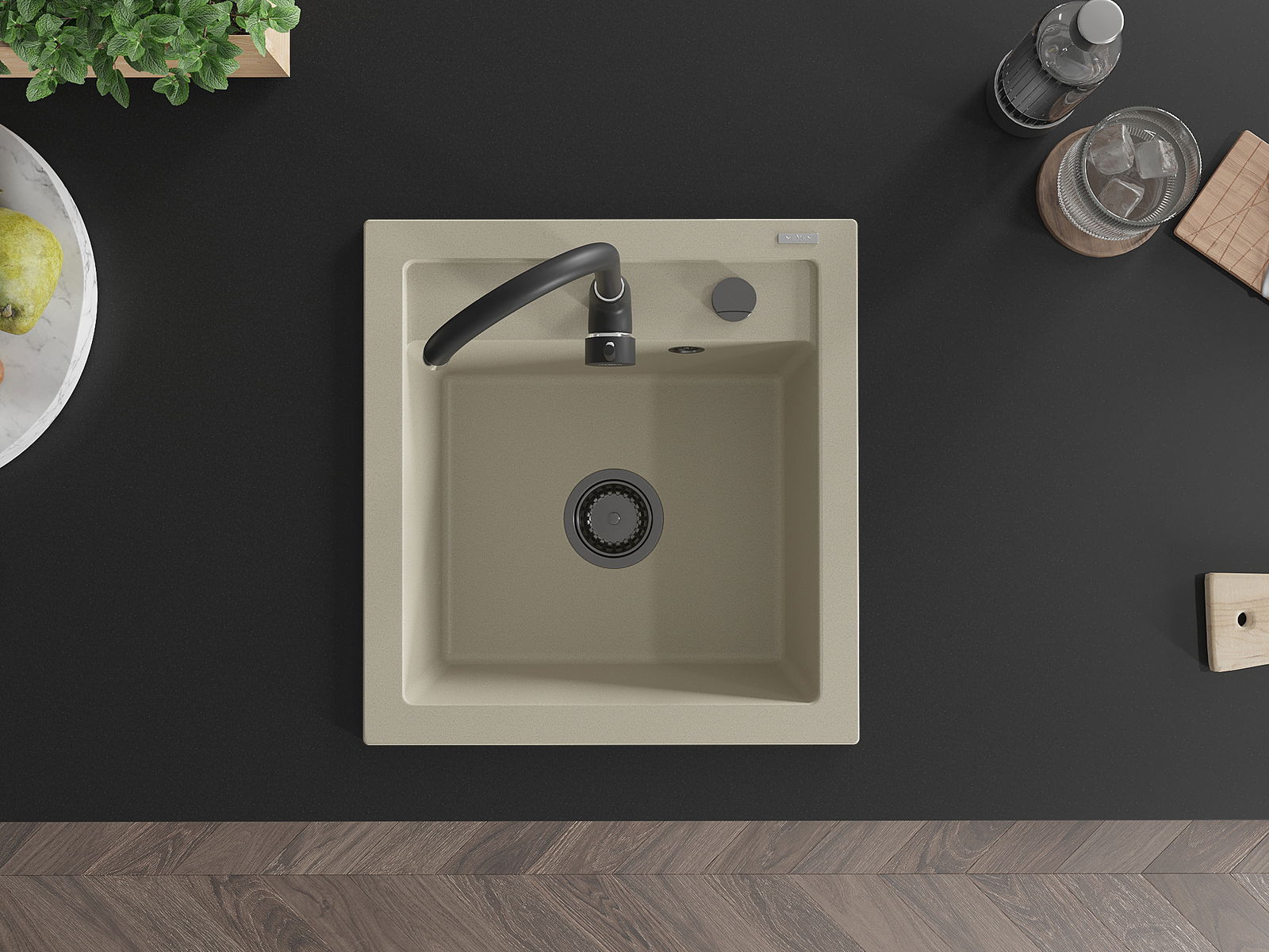 Mexen Vito zlewozmywak granitowy 1-komorowy 520 x 490 mm, beżowy, syfon czarny - 6503521000-69-B