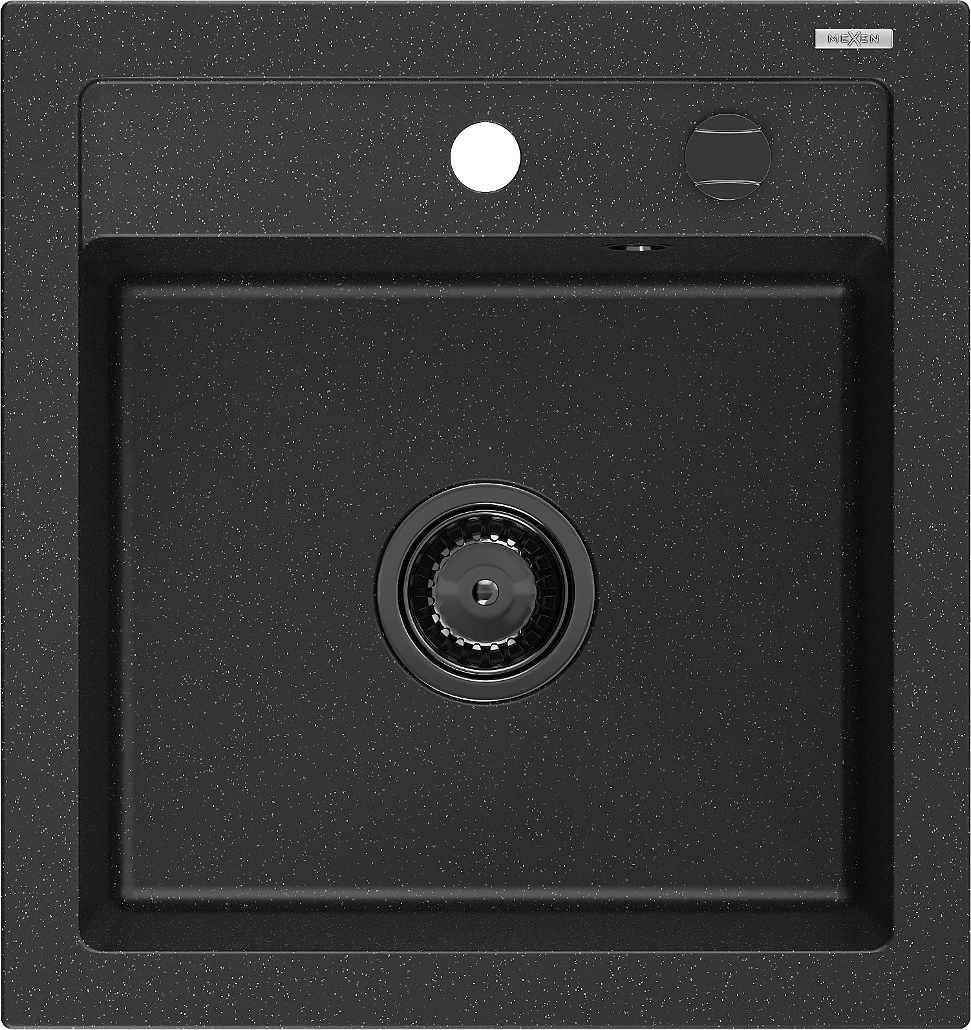 Mexen Vito zlewozmywak granitowy 1-komorowy 520 x 490 mm, czarny/srebrny metalik, syfon czarny - 6503521000-73-B