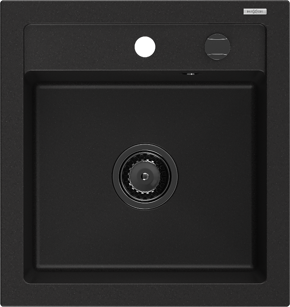 Mexen Vito zlewozmywak granitowy 1-komorowy 520 x 490 mm, czarny, syfon czarny - 6503521000-77-B