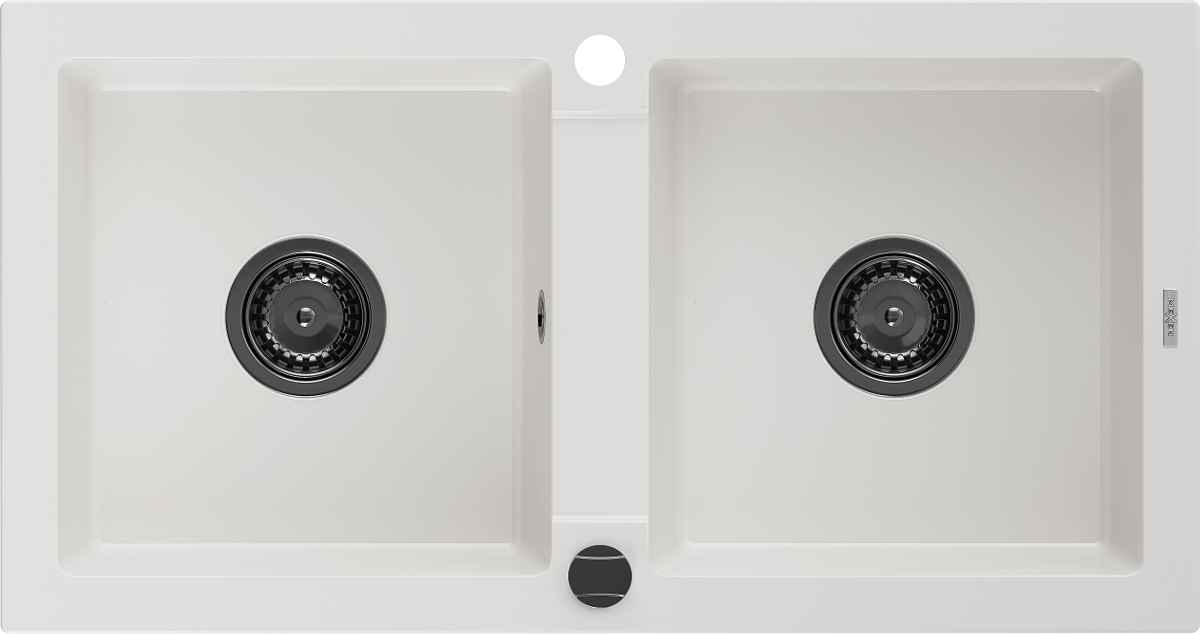 Mexen Mario zlewozmywak granitowy 2-komorowy 820 x 436 mm, biały, syfon czarny - 6504822000-20-B