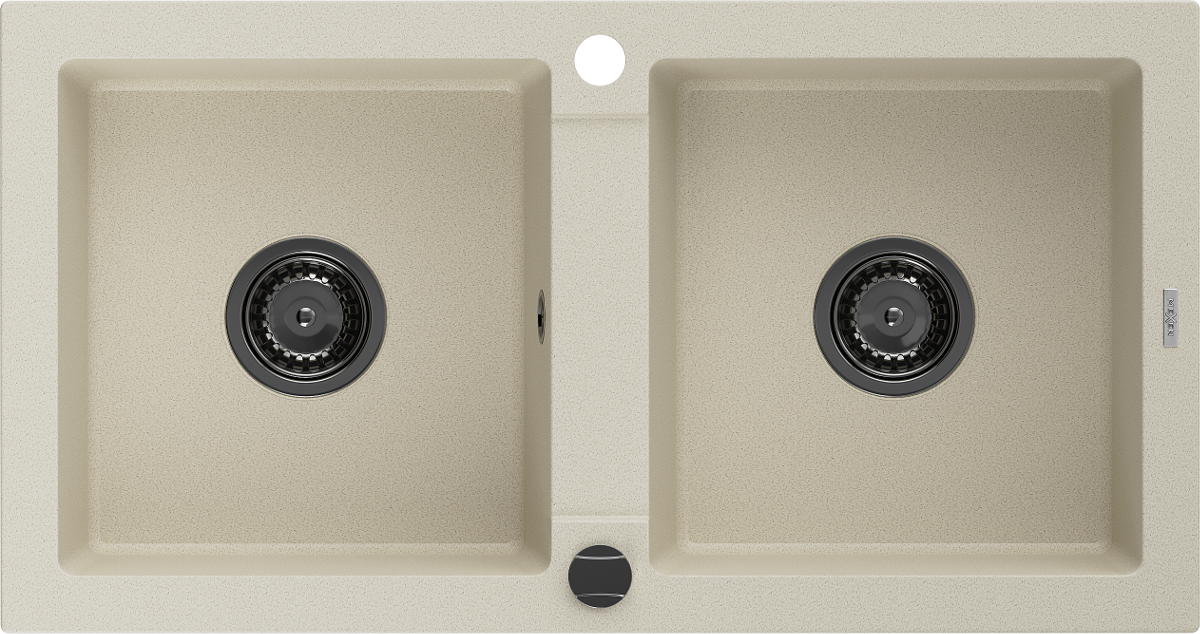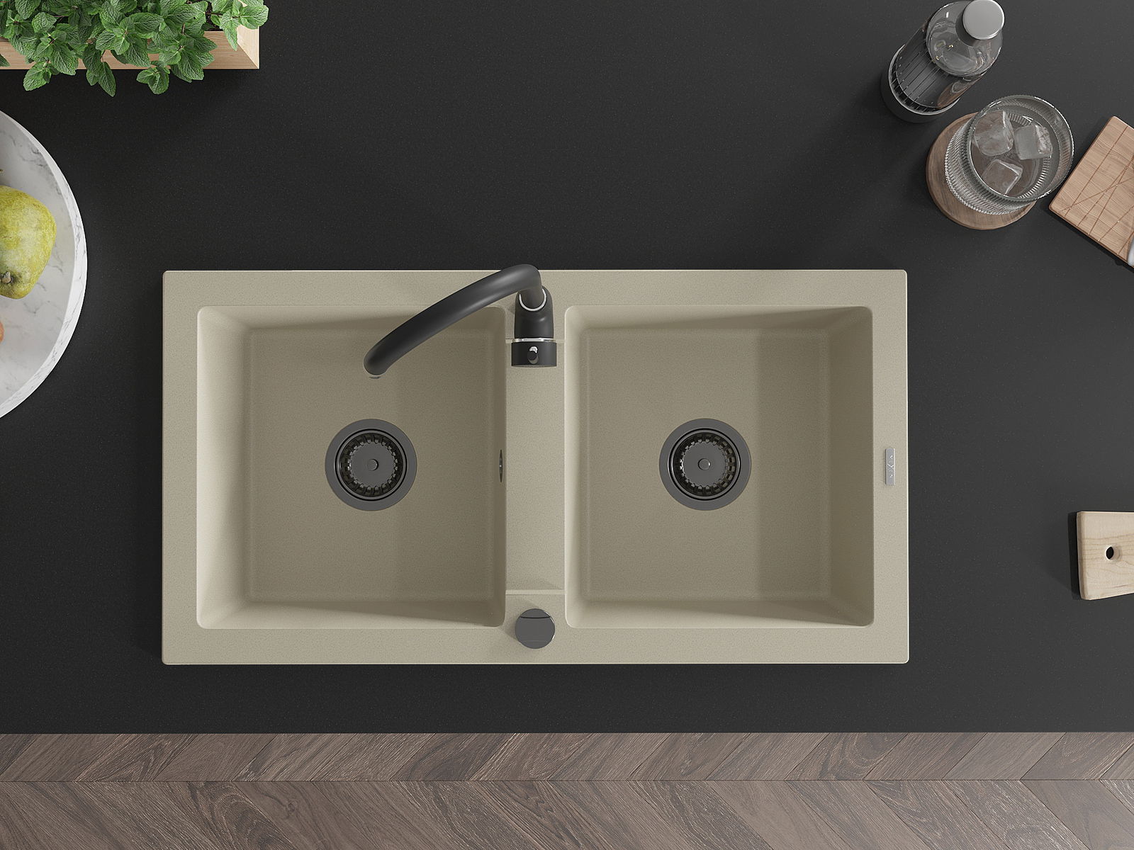 Mexen Mario zlewozmywak granitowy 2-komorowy 820 x 436 mm, beżowy, syfon czarny - 6504822000-69-B
