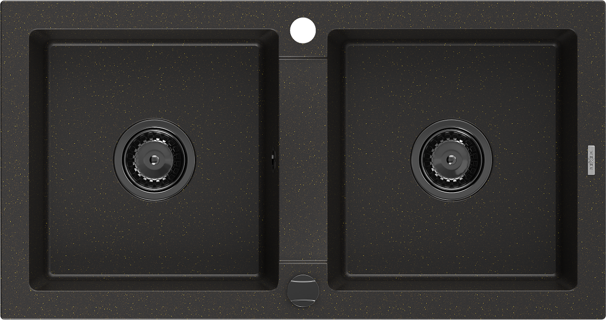 Mexen Mario zlewozmywak granitowy 2-komorowy 820 x 436 mm, czarny/złoty metalik, syfon czarny - 6504822000-75-B