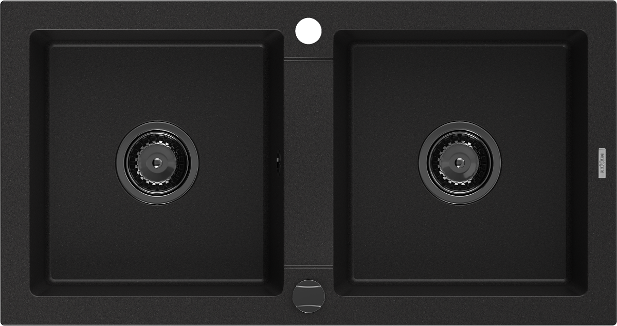 Mexen Mario zlewozmywak granitowy 2-komorowy 820 x 436 mm, czarny, syfon czarny - 6504822000-77-B