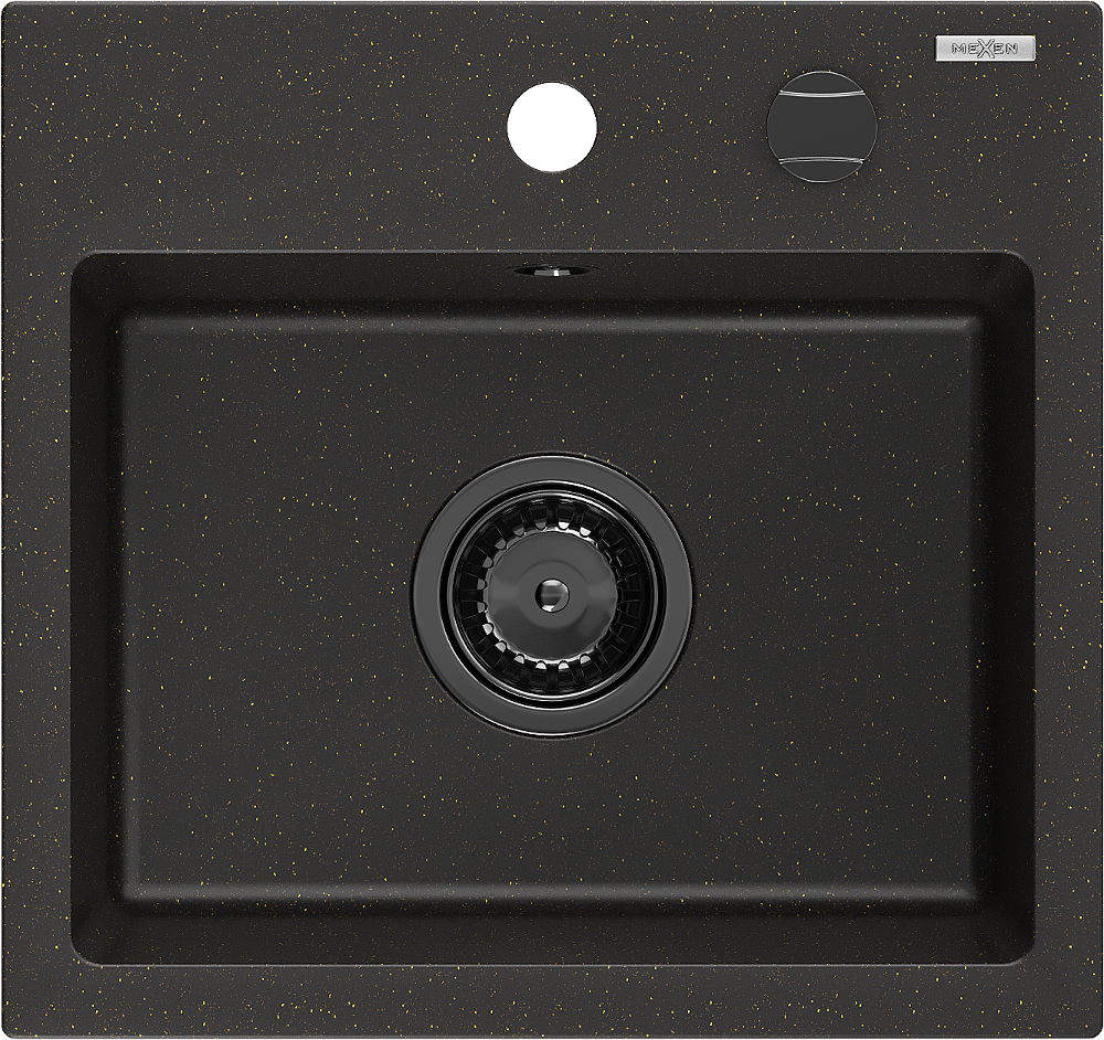 Mexen Milo zlewozmywak granitowy 1-komorowy 435 x 410 mm, czarny/złoty metalik, syfon czarny - 6505441000-75-B