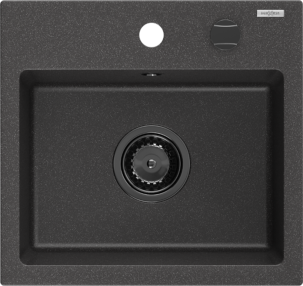 Mexen Milo zlewozmywak granitowy 1-komorowy 435 x 410 mm, czarny nakrapiany, syfon czarny - 6505441000-76-B