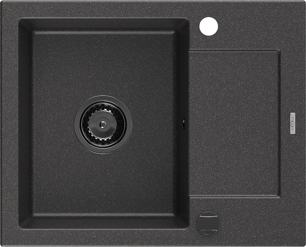 Mexen Enzo zlewozmywak granitowy 1-komorowy z ociekaczem 576 x 465 mm, czarny nakrapiany, syfon czarny - 6506571005-76-B