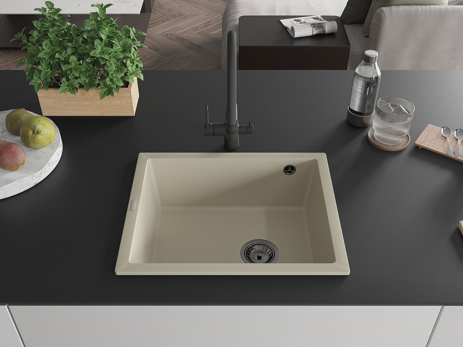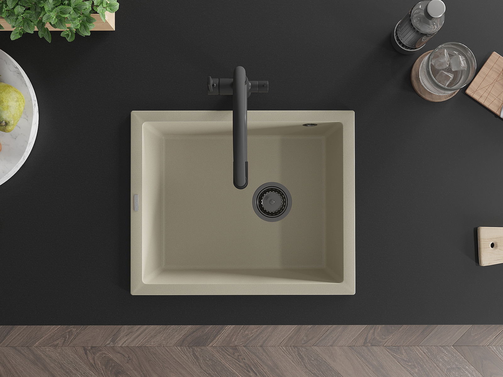 Mexen Pedro zlewozmywak granitowy 1-komorowy 560 x 460 mm, beżowy, syfon czarny - 6508561000-69-B