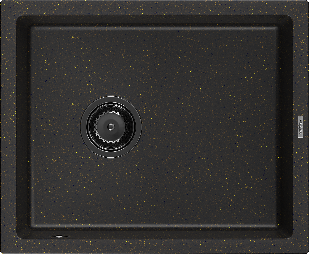 Mexen Pedro zlewozmywak granitowy 1-komorowy 560 x 460 mm, czarny/złoty metalik, syfon czarny - 6508561000-75-B
