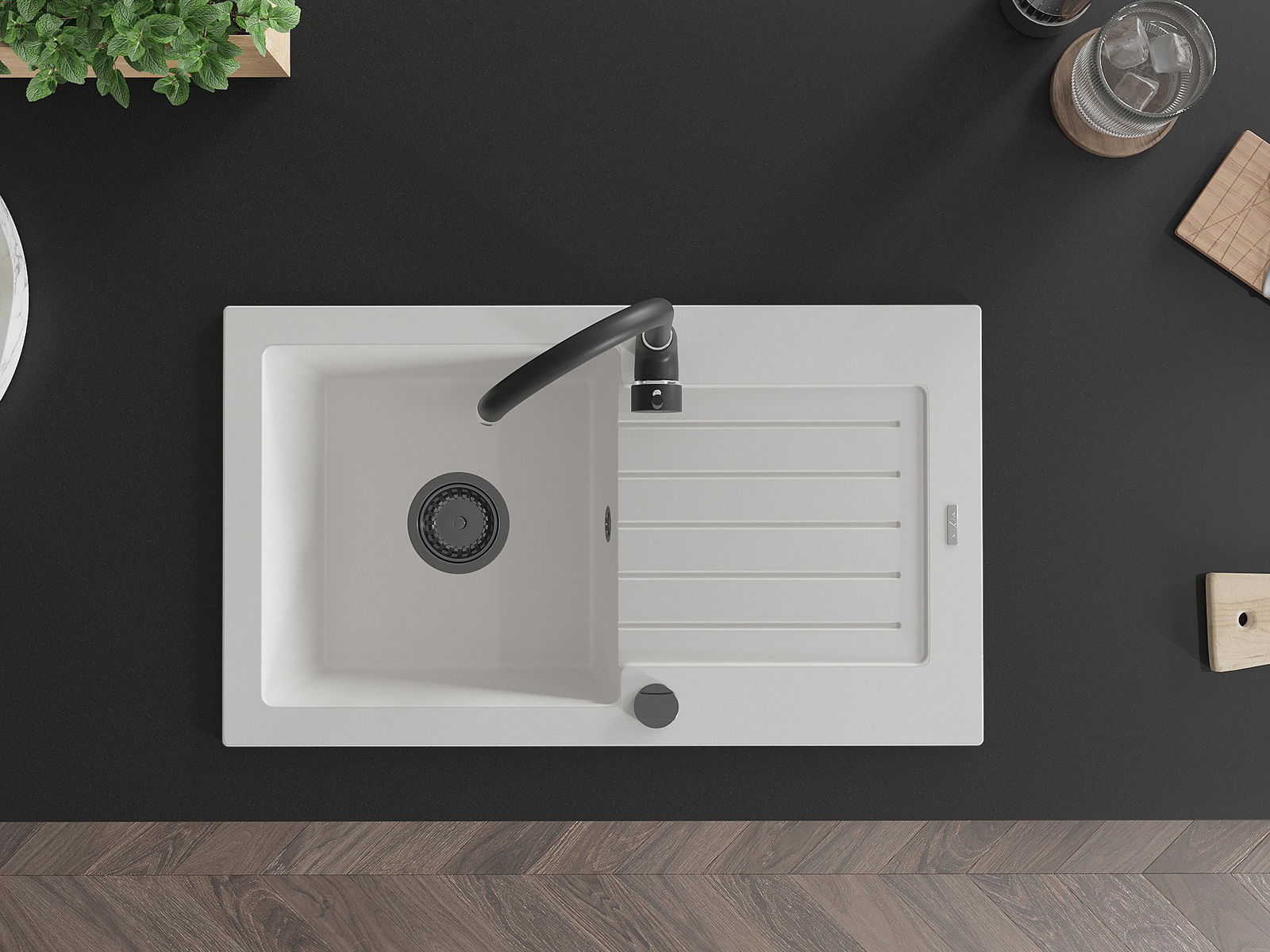 Mexen Pablo zlewozmywak granitowy 1-komorowy z ociekaczem 752 x 436 mm, biały, syfon czarny - 6510751010-20-B