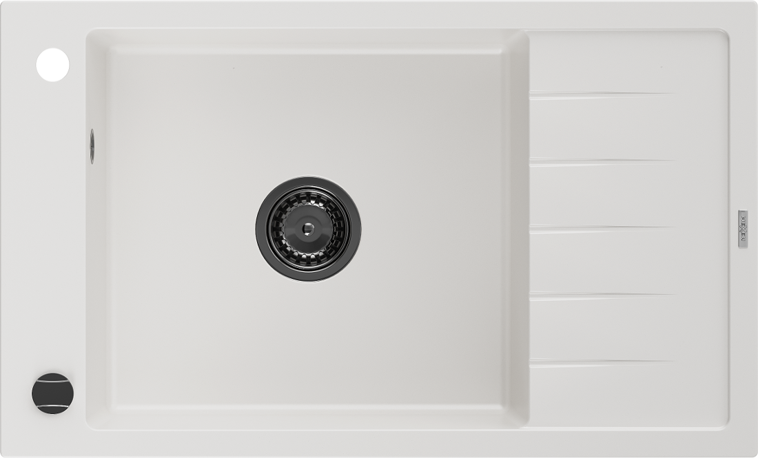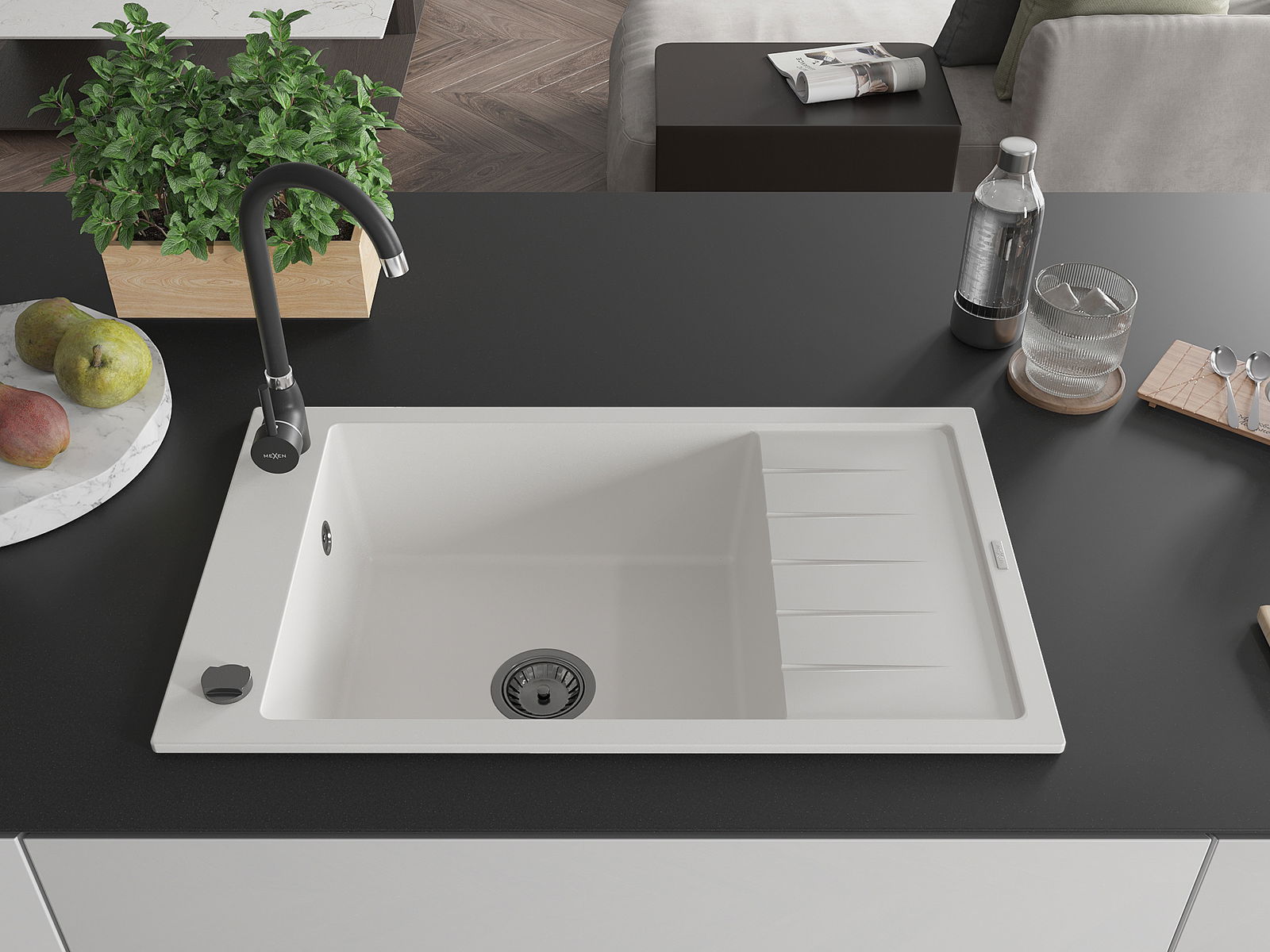 Mexen Elias zlewozmywak granitowy 1-komorowy z ociekaczem 795 x 480 mm, biały, syfon czarny - 6511791005-20-B
