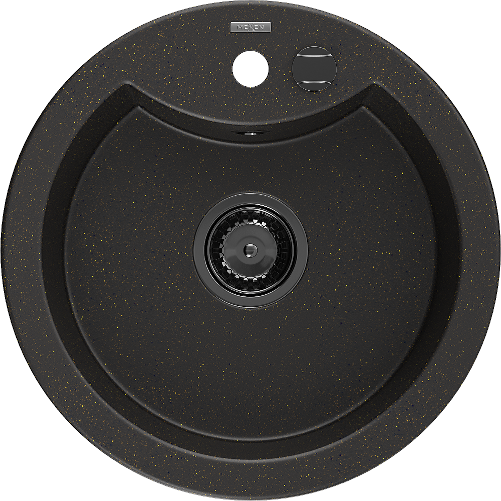 Mexen Diego zlewozmywak granitowy 1-komorowy 488 x 480 mm, czarny/złoty metalik, syfon czarny - 6512481000-75-B