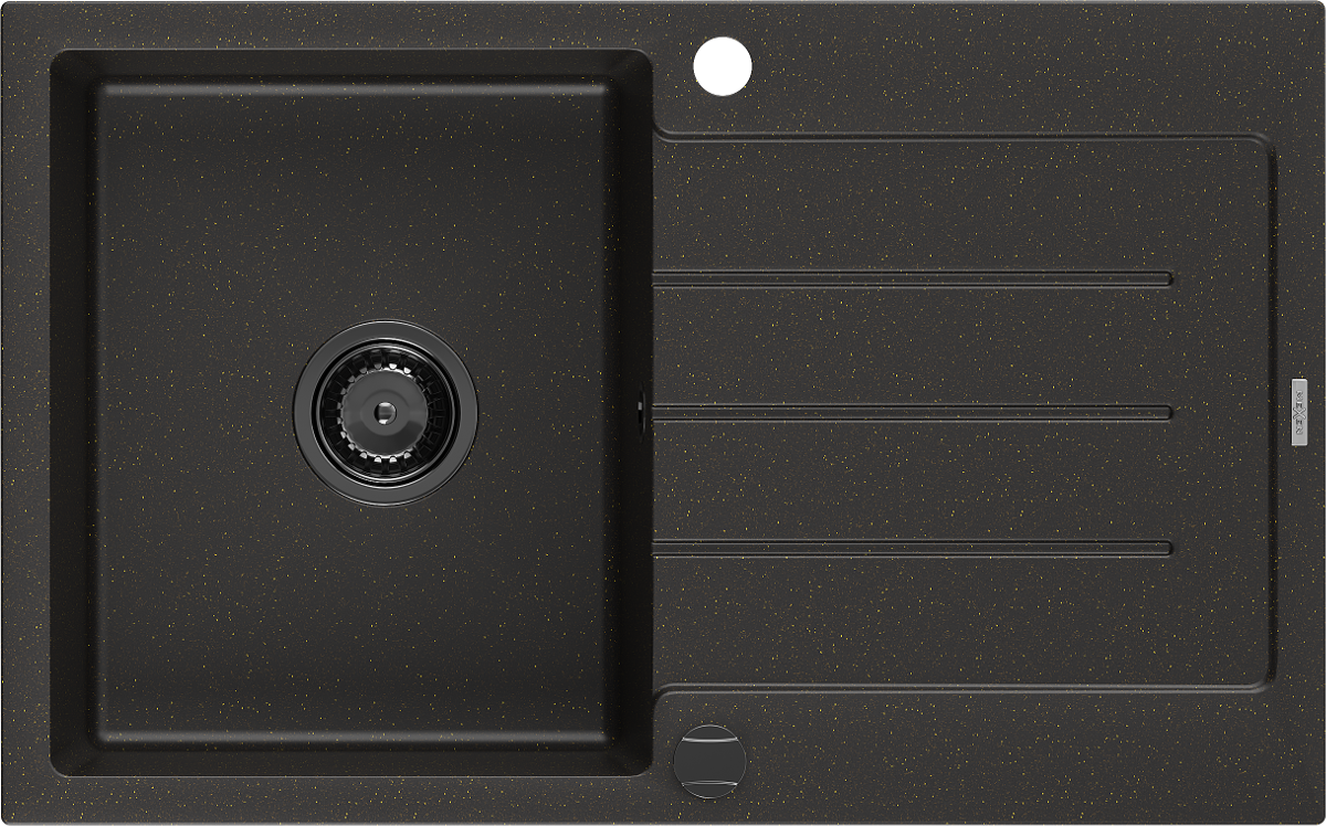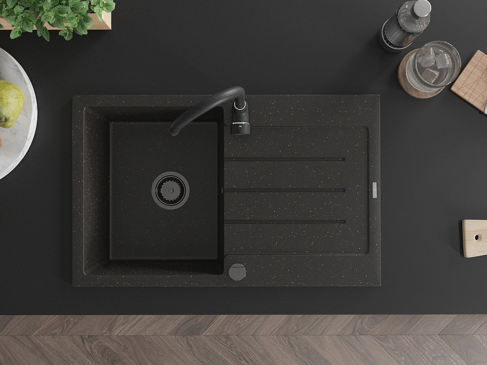 Mexen Bruno zlewozmywak granitowy 1-komorowy z ociekaczem 795 x 495 mm, czarny/złoty metalik, syfon czarny - 6513791010-75-B