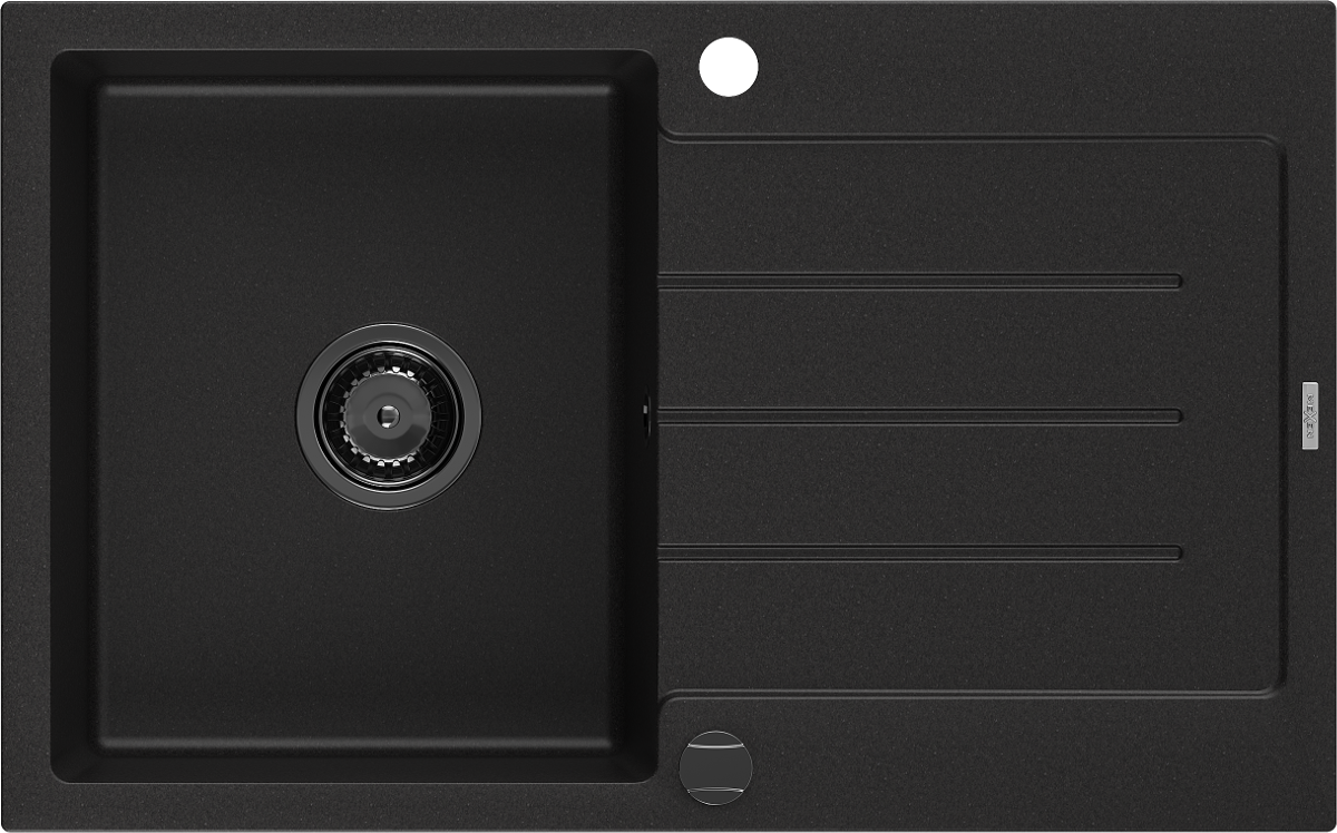 Mexen Bruno zlewozmywak granitowy 1-komorowy z ociekaczem 795 x 495 mm, czarny, syfon czarny - 6513791010-77-B