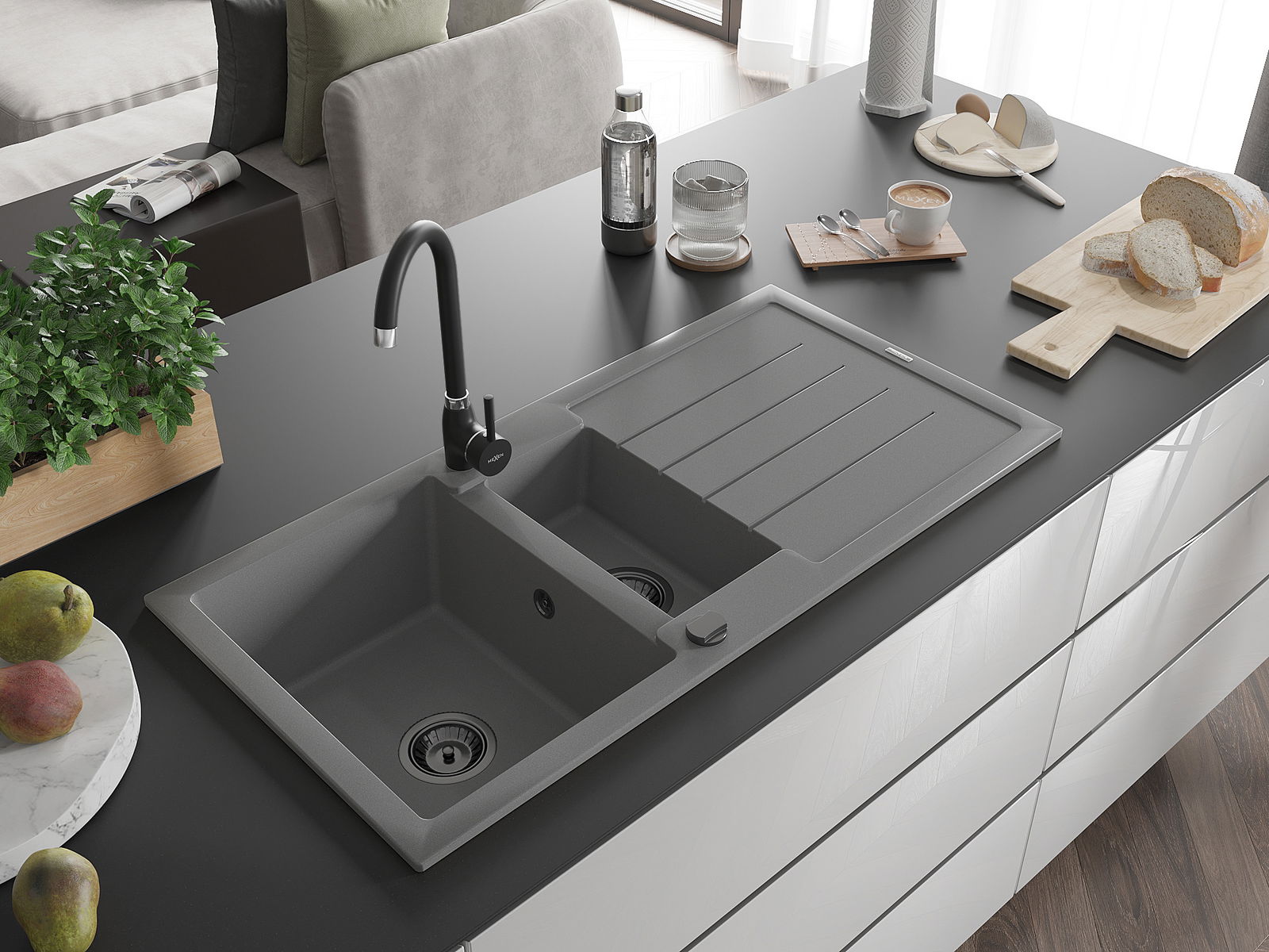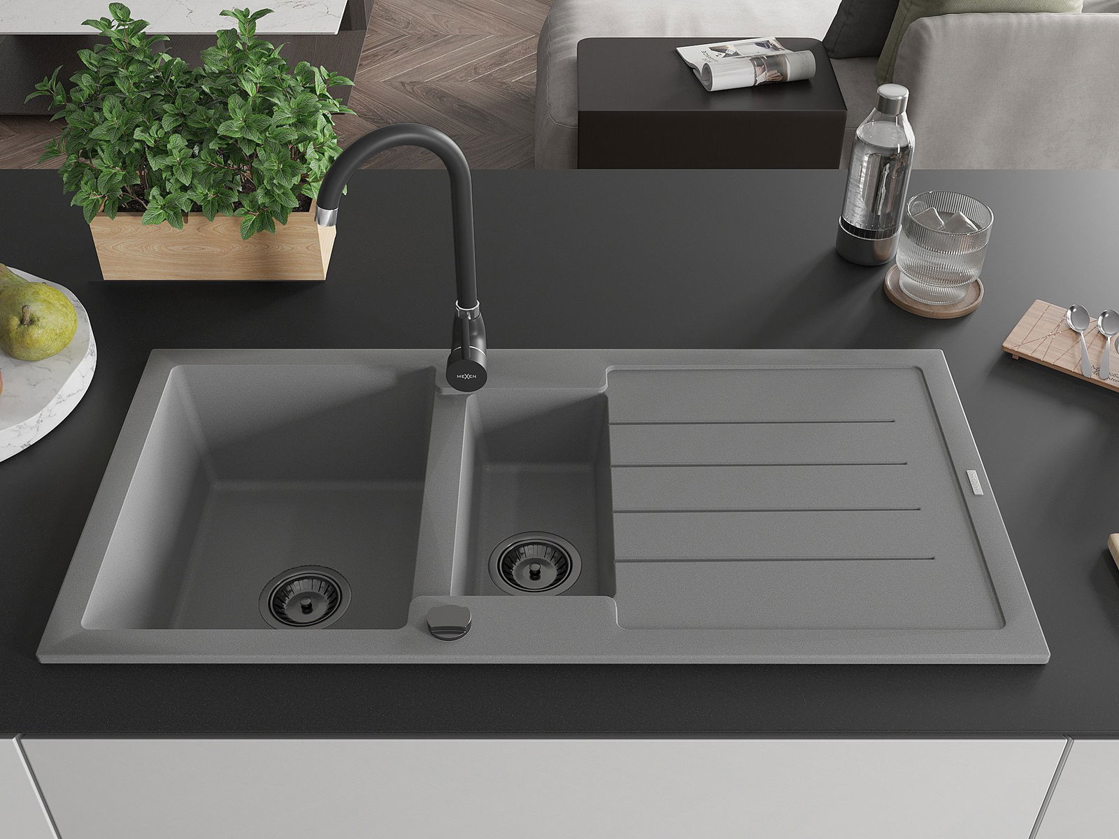 Mexen Andres zlewozmywak granitowy 1,5-komorowy z ociekaczem 1000 x 500 mm, szary, syfon czarny - 6515101510-71-B