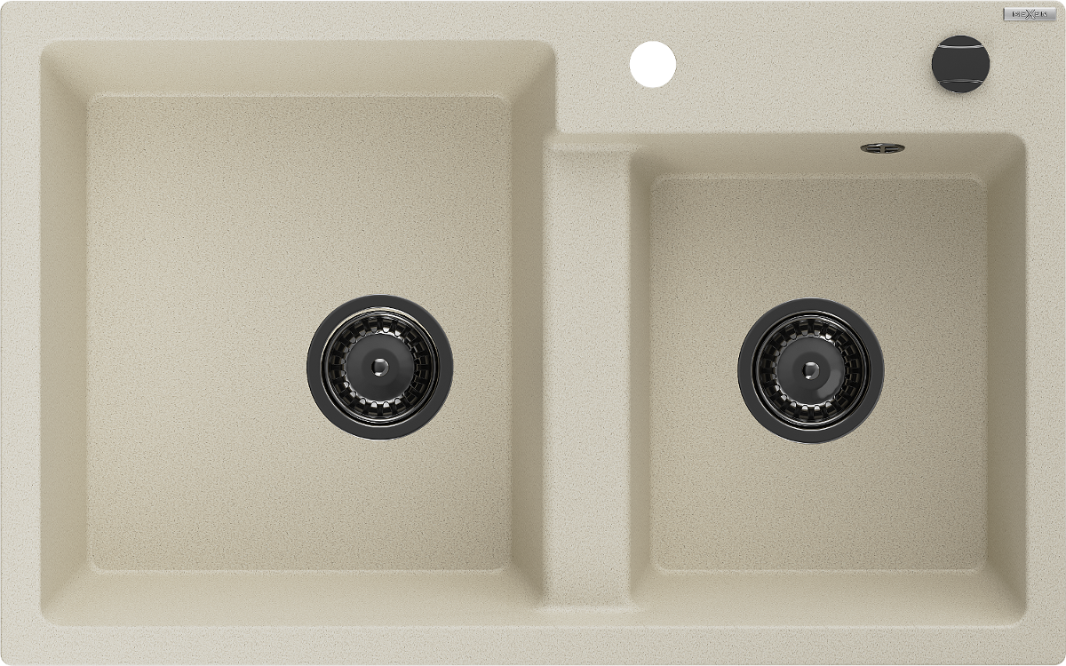 Mexen Tomas zlewozmywak granitowy 2-komorowy 800 x 500 mm, beżowy, syfon czarny - 6516802000-69-B
