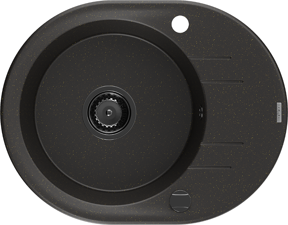 Mexen Kevin zlewozmywak granitowy 1-komorowy z ociekaczem 586 x 458 mm, czarny/złoty metalik, syfon czarny - 6517581005-75-B