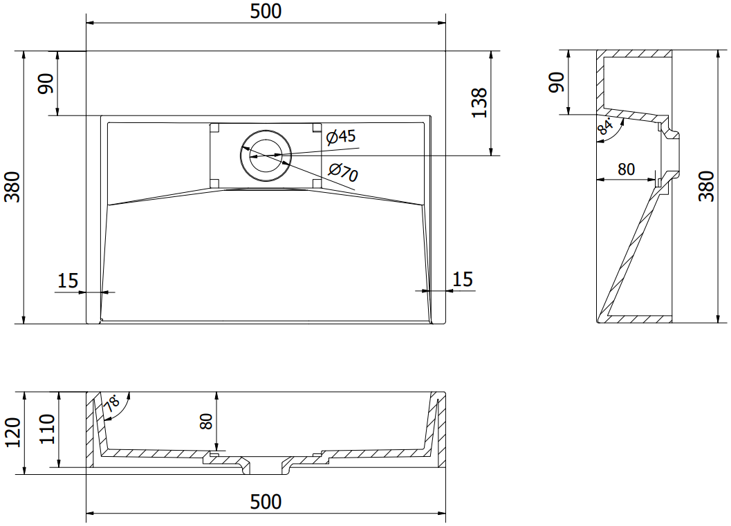 Otwór przelewowy: Nie