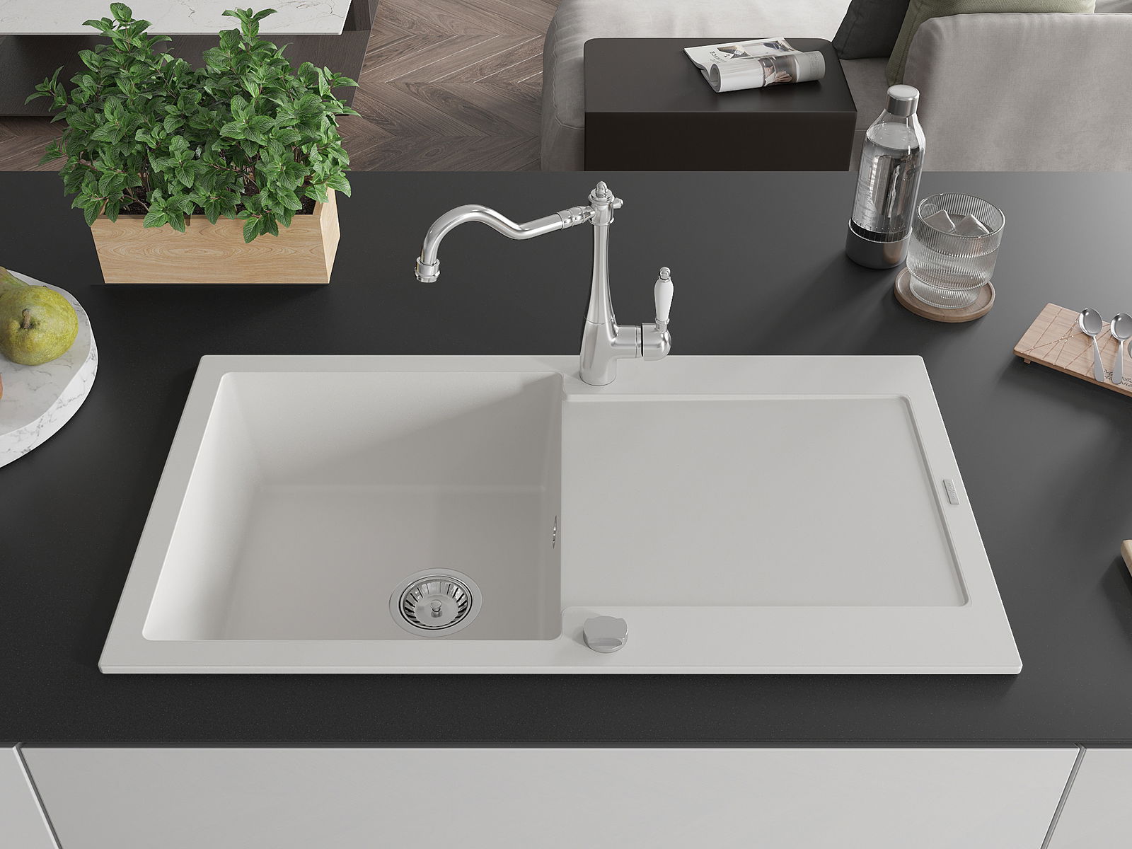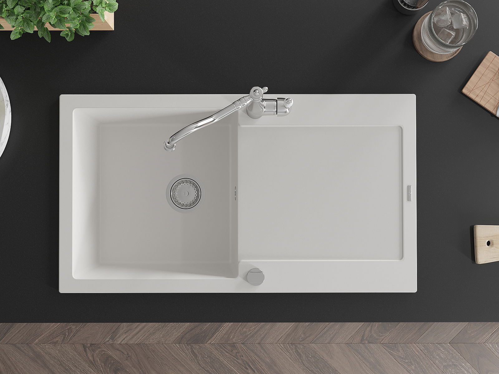Powierzchnia zlewozmywaka jest odporna na plamy i przebarwienia, dzięki czemu jest łatwa w utrzymaniu czystości oraz zachowuje swój kolor przez długi czas użytkowania. Estetyczne i praktycznie uzupełnienie każdej kuchni.