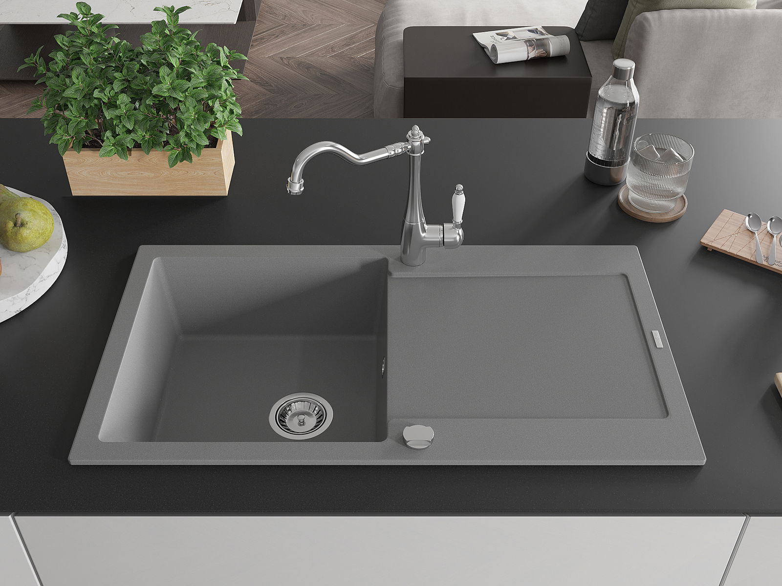 Zlewozmywak został wykonany z wysokiej jakości granitu. Stanowi eleganckie, a przede wszystkim praktyczne uzupełnienie każdej kuchni, niezależnie od jej stylu. Wysoka jakość oraz trwałość granitu zapewniają wieloletnie użytkowanie.