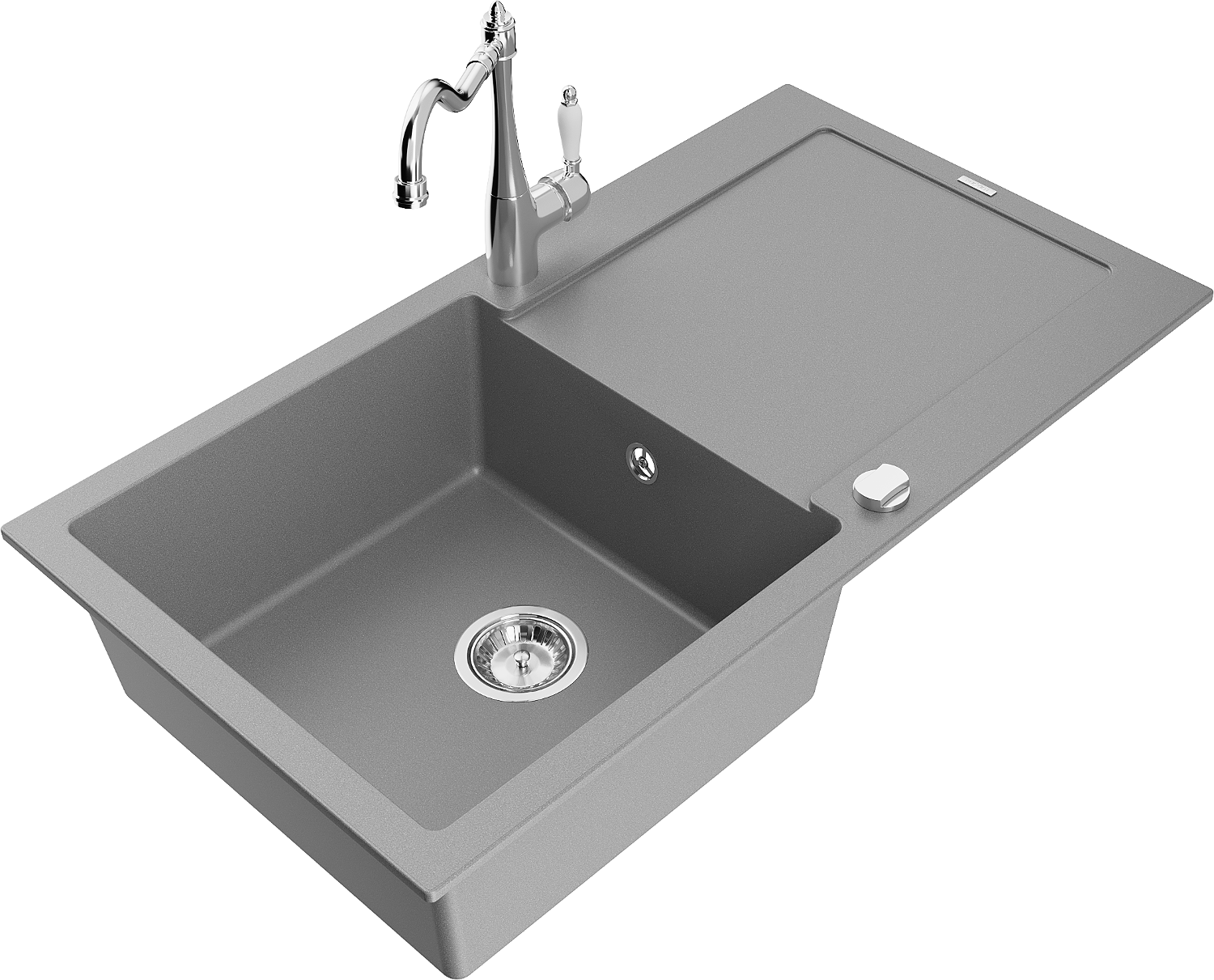 Mexen Leo zlewozmywak granitowy 1-komorowy z ociekaczem i baterią kuchenną Carla, szary - 6501-71-670700-00