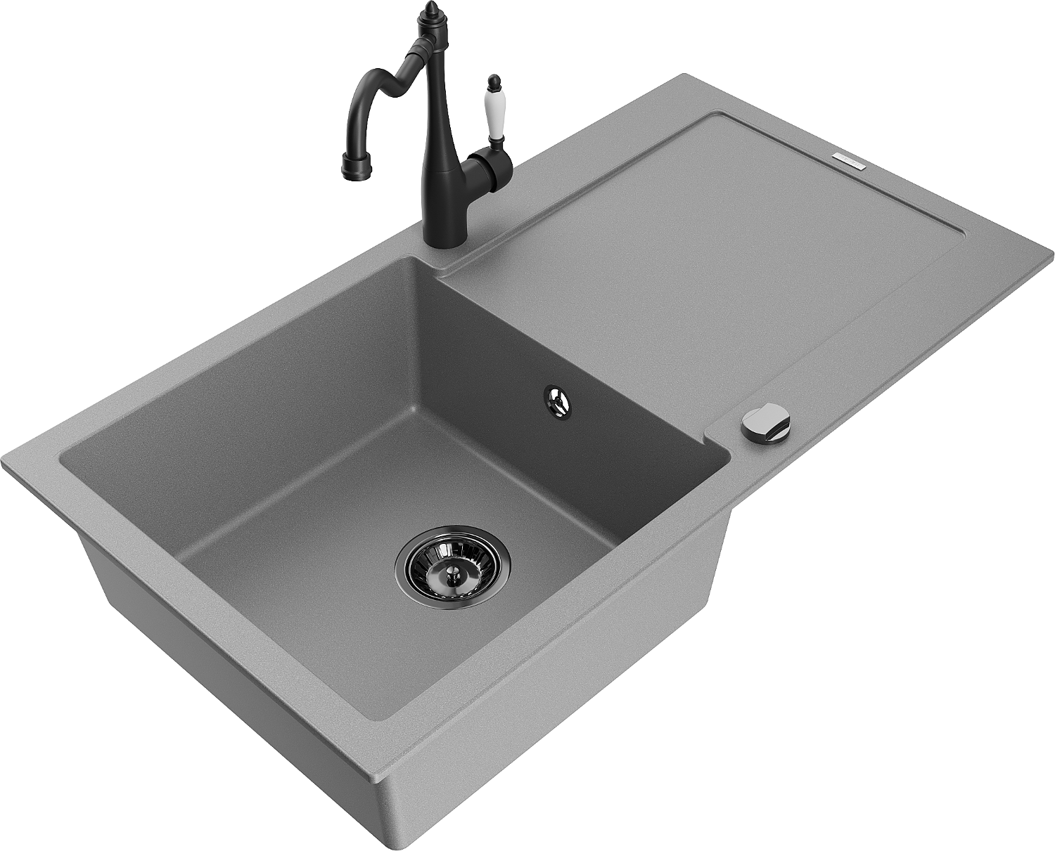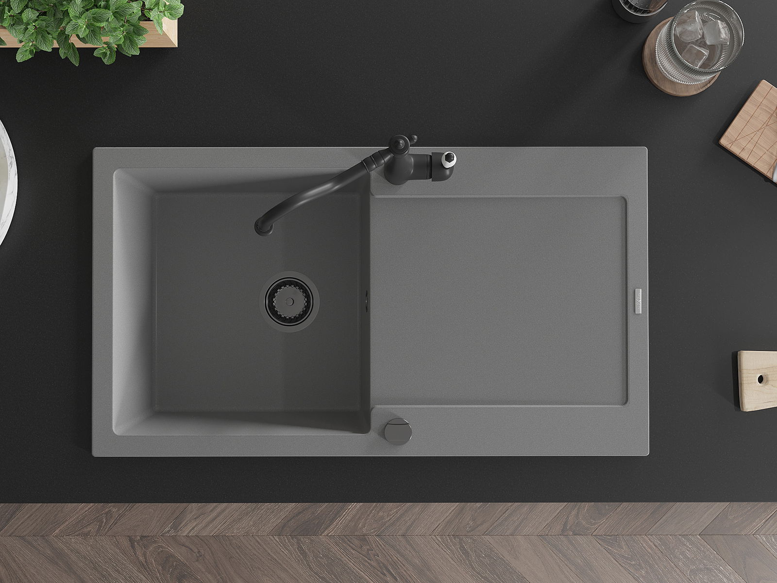 Mexen Leo zlewozmywak granitowy 1-komorowy z ociekaczem i baterią kuchenną Carla, szary - 6501-71-670700-70-B