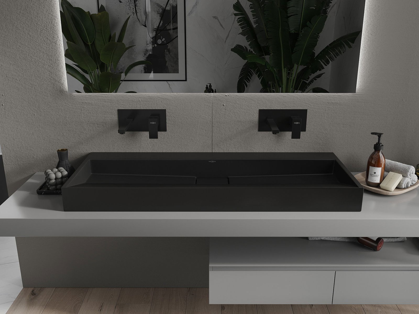 Mexen Ava umywalka nablatowa z konglomeratu B/O 120 x 46 cm, czarna - 23011270