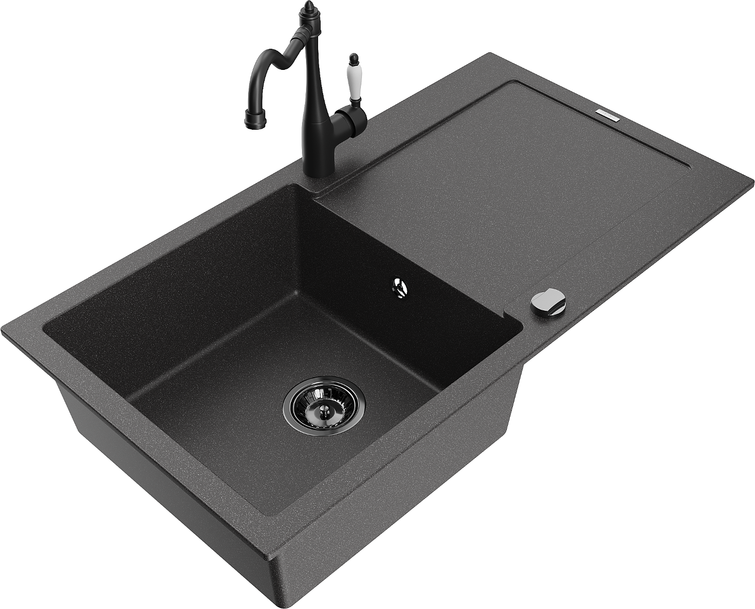 Mexen Leo zlewozmywak granitowy 1-komorowy z ociekaczem i baterią kuchenną Carla, czarny nakrapiany - 6501-76-670700-70-B
