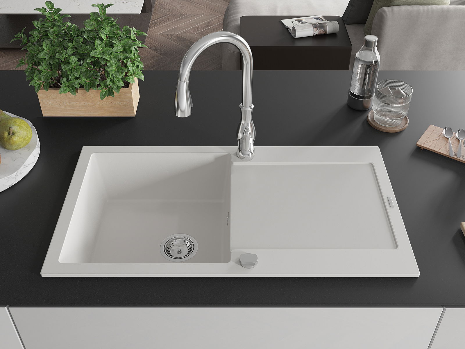 Zlewozmywak został wykonany z wysokiej jakości granitu. Stanowi eleganckie, a przede wszystkim praktyczne uzupełnienie każdej kuchni, niezależnie od jej stylu. Wysoka jakość oraz trwałość granitu zapewniają wieloletnie użytkowanie.