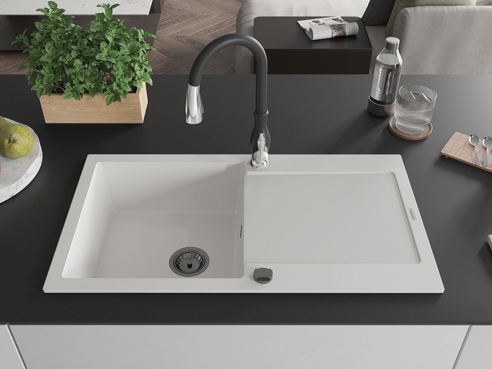 Zlewozmywak został wykonany z wysokiej jakości granitu. Stanowi eleganckie, a przede wszystkim praktyczne uzupełnienie każdej kuchni, niezależnie od jej stylu. Wysoka jakość oraz trwałość granitu zapewniają wieloletnie użytkowanie.