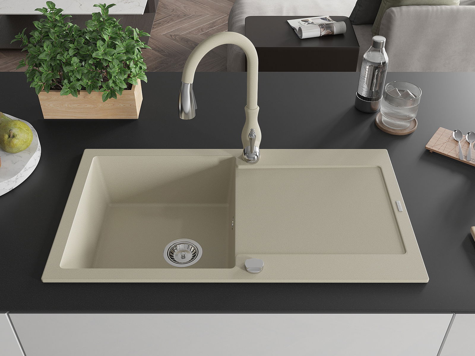 Zlewozmywak został wykonany z wysokiej jakości granitu. Stanowi eleganckie, a przede wszystkim praktyczne uzupełnienie każdej kuchni, niezależnie od jej stylu. Wysoka jakość oraz trwałość granitu zapewniają wieloletnie użytkowanie.