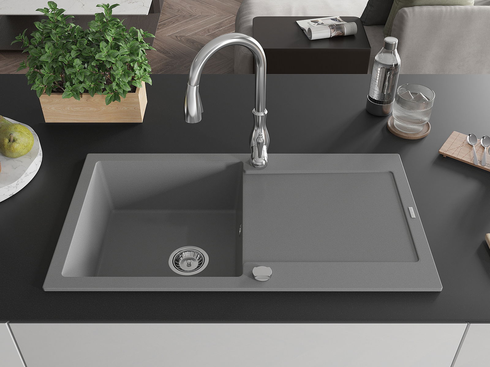Zlewozmywak został wykonany z wysokiej jakości granitu. Stanowi eleganckie, a przede wszystkim praktyczne uzupełnienie każdej kuchni, niezależnie od jej stylu. Wysoka jakość oraz trwałość granitu zapewniają wieloletnie użytkowanie.