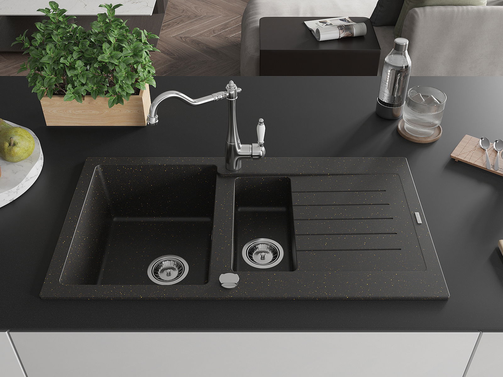 Dobrze zabezpieczona powierzchnia zlewozmywaka hamuje wnikanie zabrudzeń do jego wewnętrznych struktur. Dzięki temu utrzymanie zlewu w czystości jest jeszcze łatwiejsze, a jego powierzchnia zachowuje swoją estetykę na dłużej.