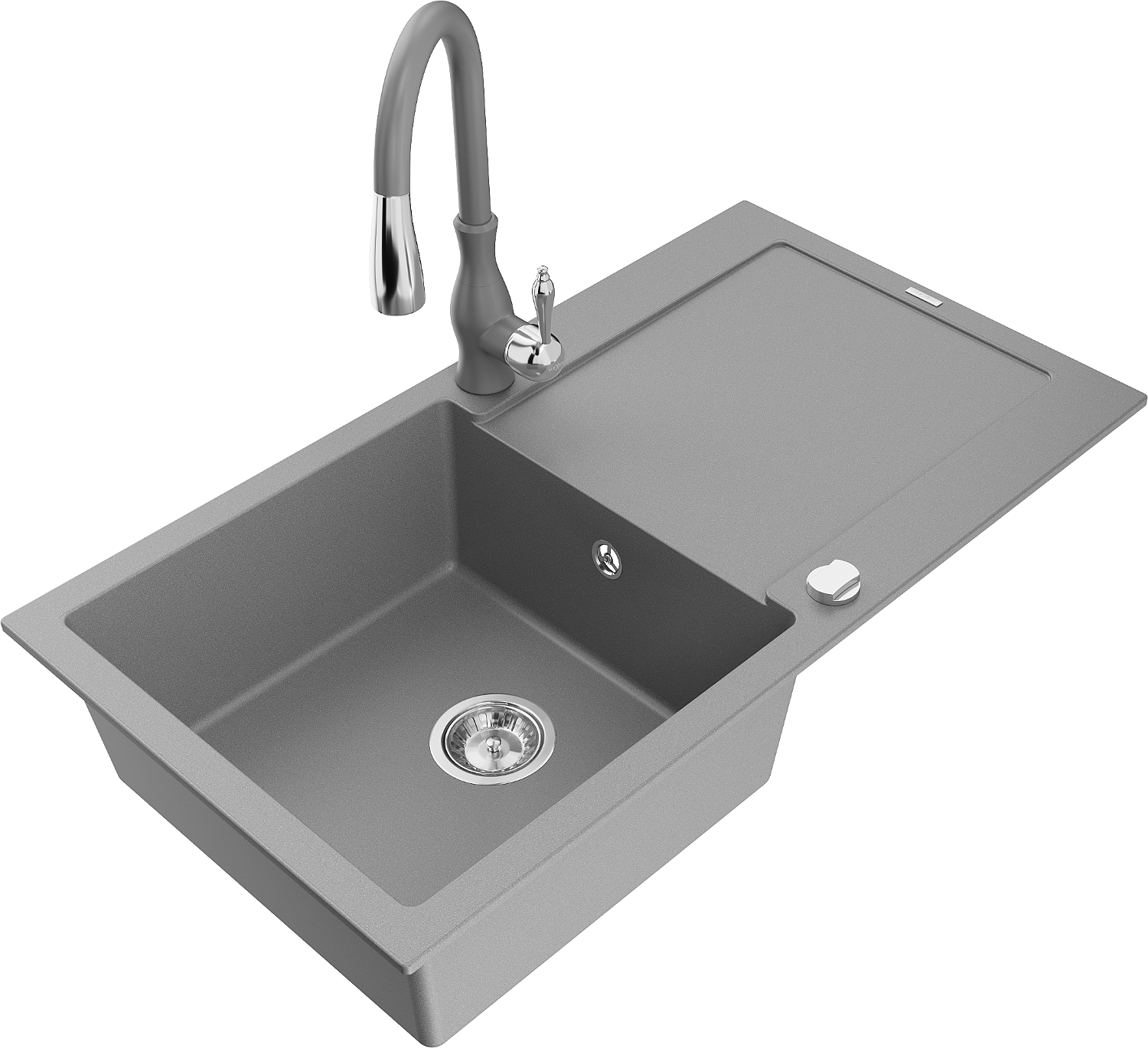 Mexen Leo zlewozmywak granitowy 1-komorowy z ociekaczem i baterią kuchenną Savita, szary - 6501-71-672601-71