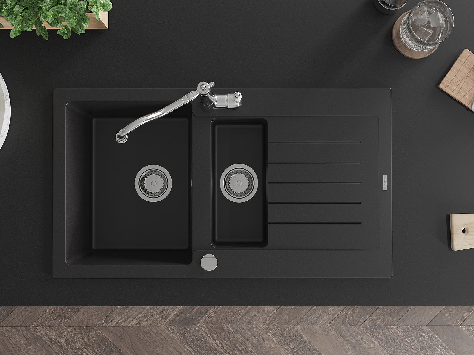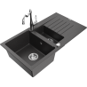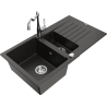 Mexen Matias zlewozmywak granitowy 1,5-komorowy z ociekaczem i baterią kuchenną Carla, czarny - 6502-77-670700-00