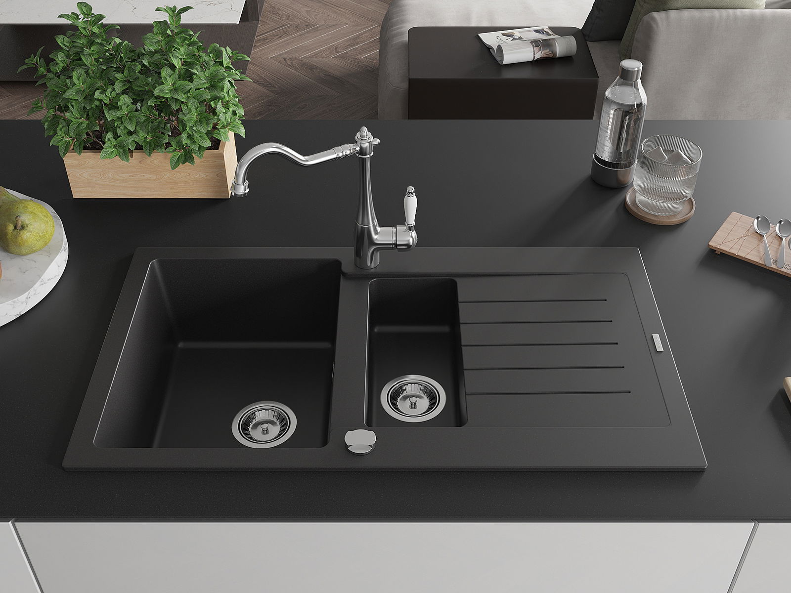 Zlewozmywak został wykonany z wysokiej jakości granitu. Stanowi eleganckie, a przede wszystkim praktyczne uzupełnienie każdej kuchni, niezależnie od jej stylu. Wysoka jakość oraz trwałość granitu zapewniają wieloletnie użytkowanie.