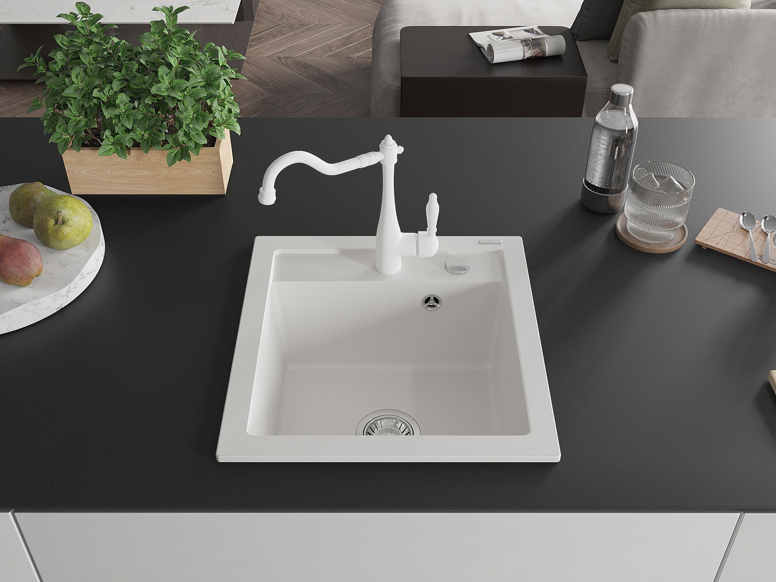Mexen Vito zlewozmywak granitowy 1-komorowy z baterią kuchenną Carla, biały - 6503-20-670700-20