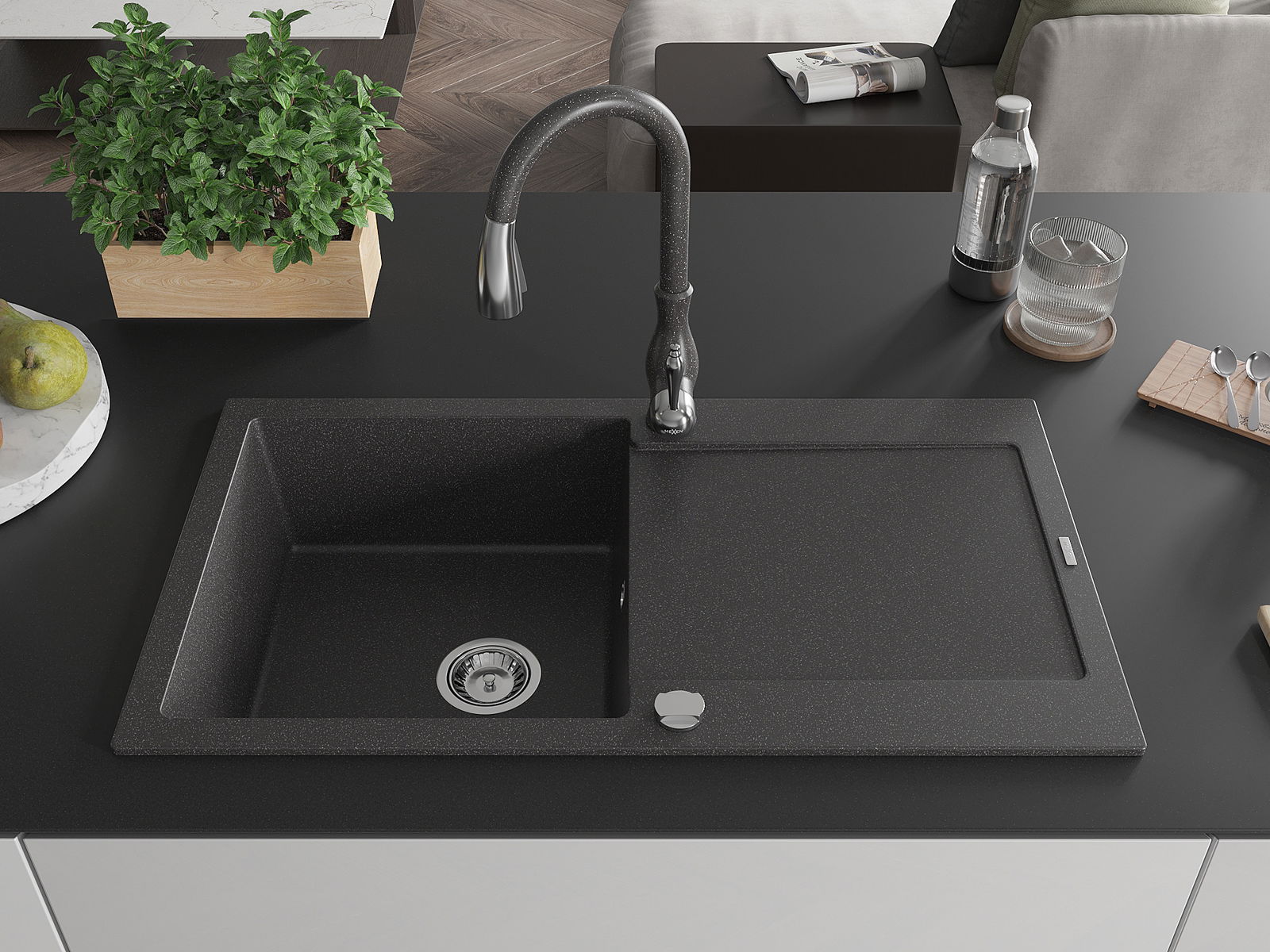 Zlewozmywak został wykonany z wysokiej jakości granitu. Stanowi eleganckie, a przede wszystkim praktyczne uzupełnienie każdej kuchni, niezależnie od jej stylu. Wysoka jakość oraz trwałość granitu zapewniają wieloletnie użytkowanie.