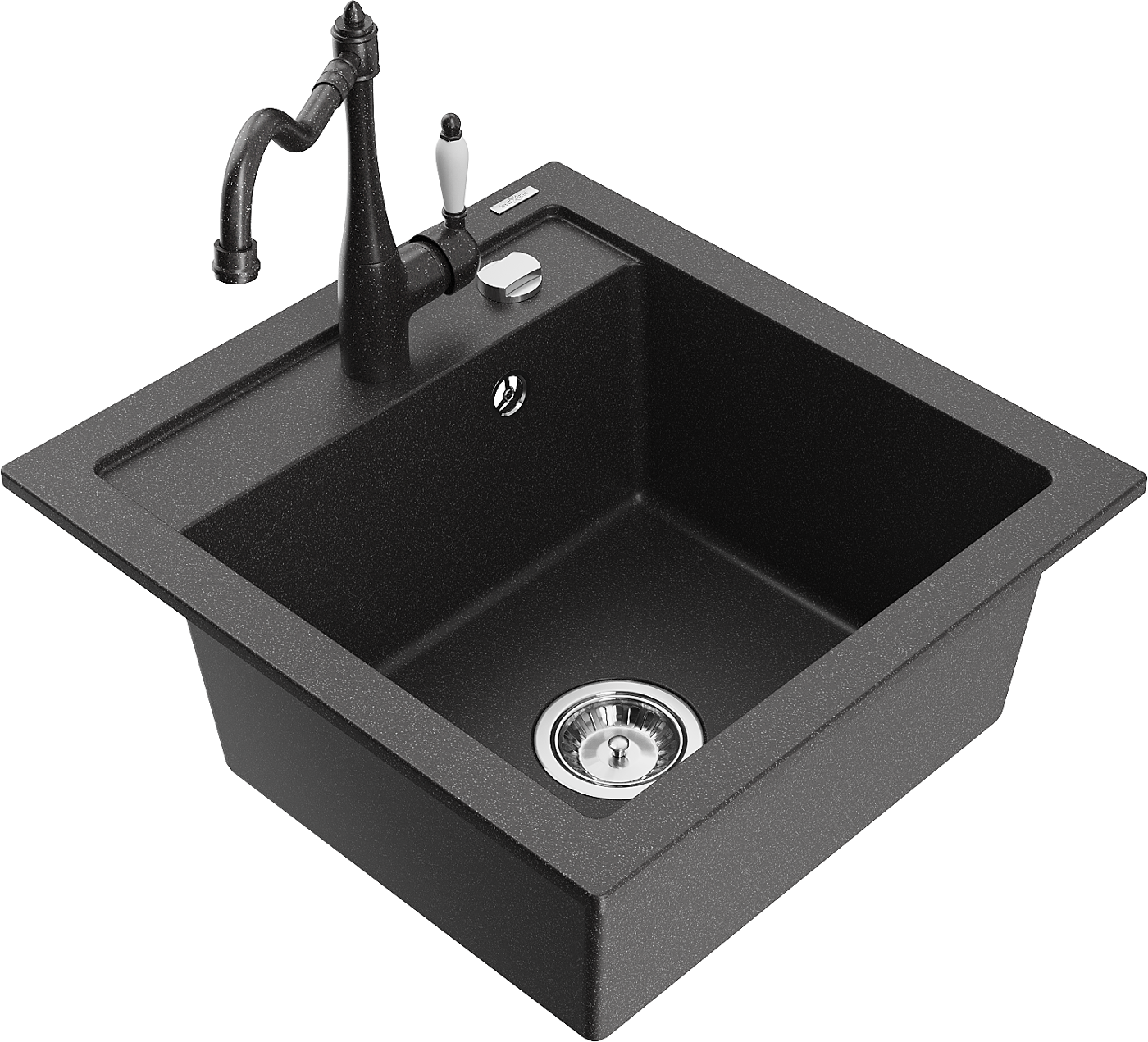 Mexen Vito zlewozmywak granitowy 1-komorowy z baterią kuchenną Carla, czarny nakrapiany - 6503-76-670700-76