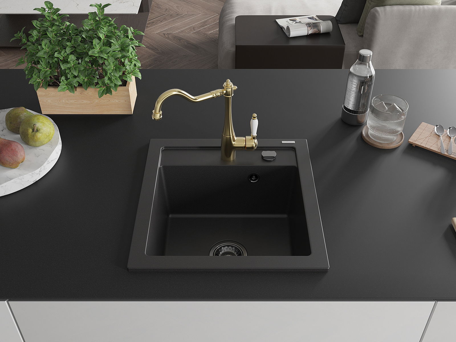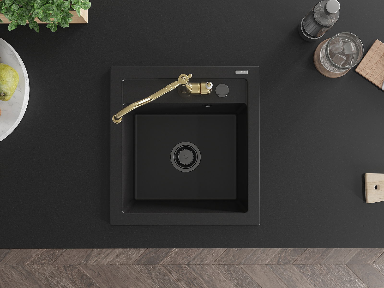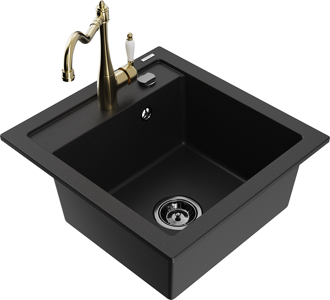 Mexen Vito zlewozmywak granitowy 1-komorowy z baterią kuchenną Carla, czarny - 6503-77-670700-50-B