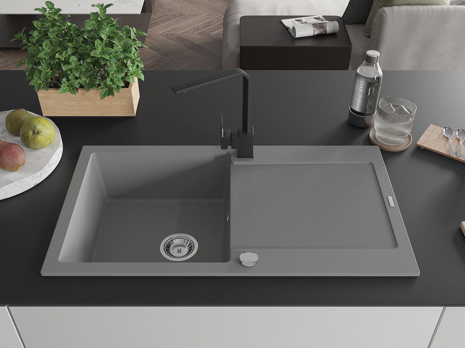 Zlewozmywak został wykonany z wysokiej jakości granitu. Stanowi eleganckie, a przede wszystkim praktyczne uzupełnienie każdej kuchni, niezależnie od jej stylu. Wysoka jakość oraz trwałość granitu zapewniają wieloletnie użytkowanie.
