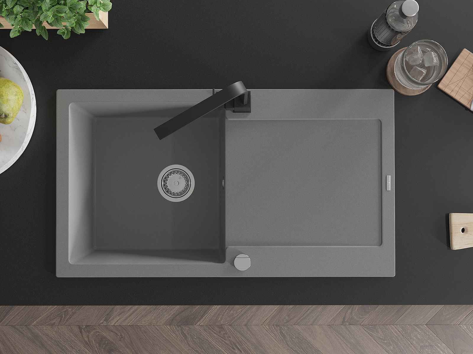 Dzięki zastosowaniu uniwersalnego systemu mocowania, zlew jest odwracalny, a ociekacz może zostać zamontowany na blacie po lewej lub prawej stronie. W ten sposób możesz z łatwością dopasować stronę do swoich potrzeb i warunków.