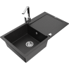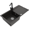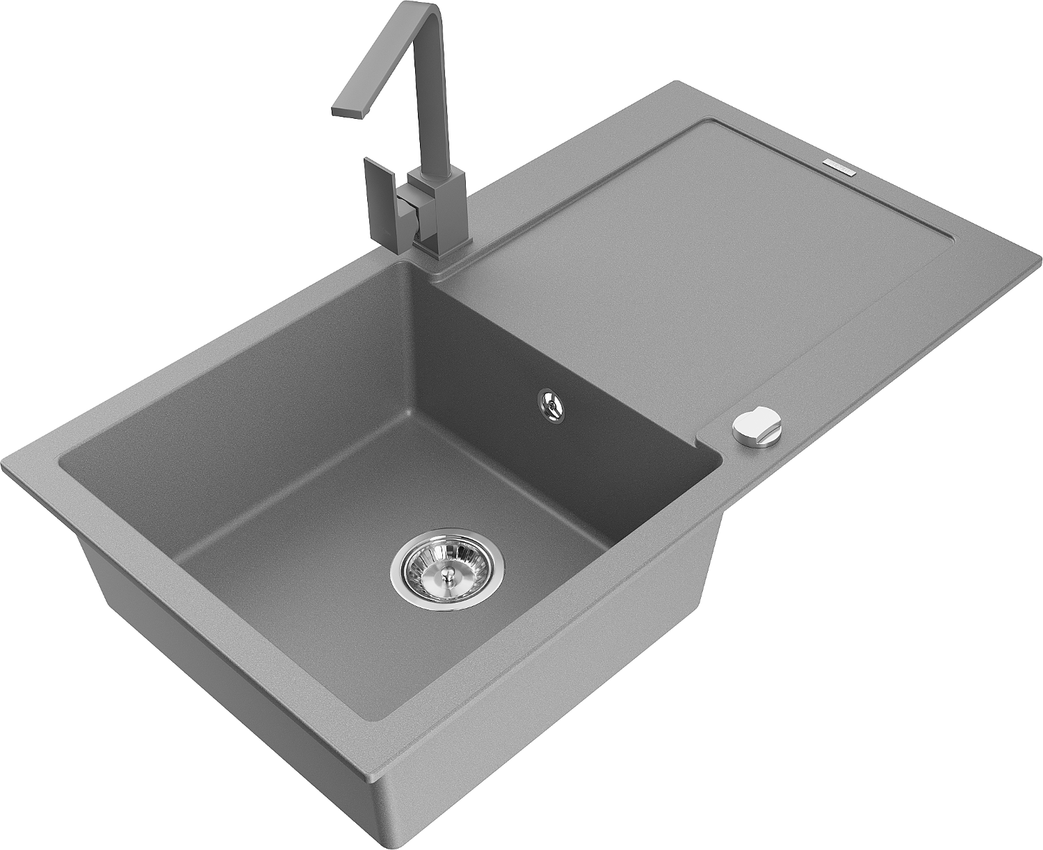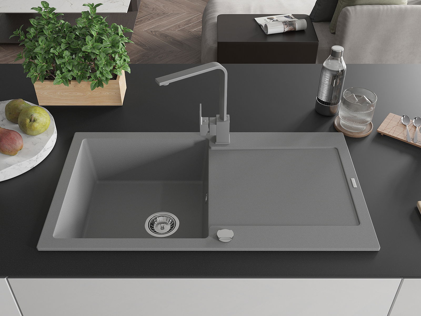 Mexen Leo zlewozmywak granitowy 1-komorowy z ociekaczem i baterią kuchenną Rita, szary - 6501-71-670300-71