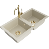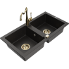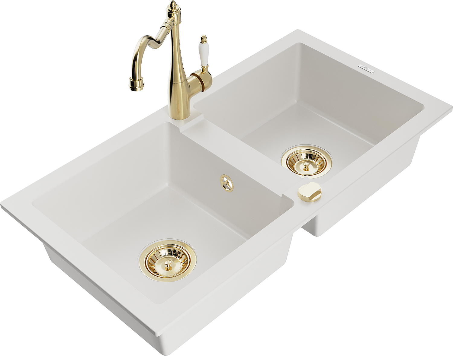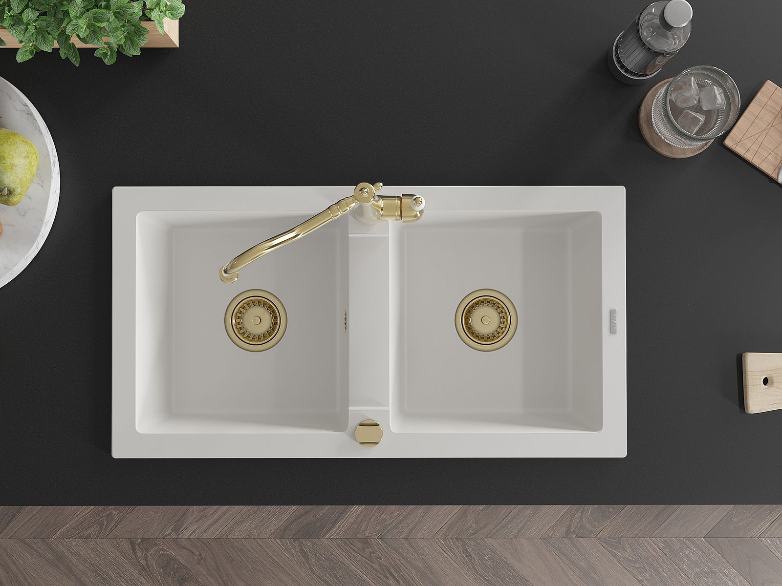 Mexen Mario zlewozmywak granitowy 2-komorowy z baterią kuchenną Carla, biały - 6504-20-670700-50