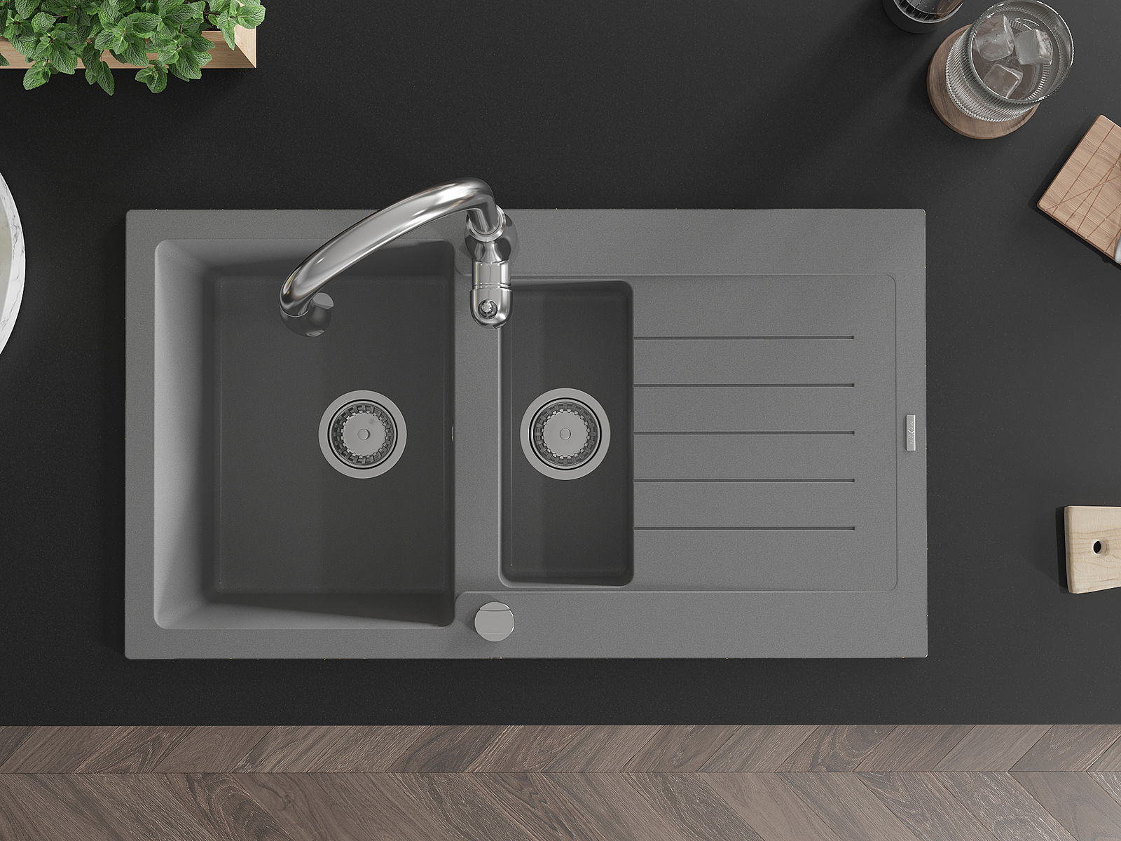 Zlewozmywak został wykonany z wysokiej jakości granitu. Stanowi eleganckie, a przede wszystkim praktyczne uzupełnienie każdej kuchni, niezależnie od jej stylu. Wysoka jakość oraz trwałość granitu zapewniają wieloletnie użytkowanie.