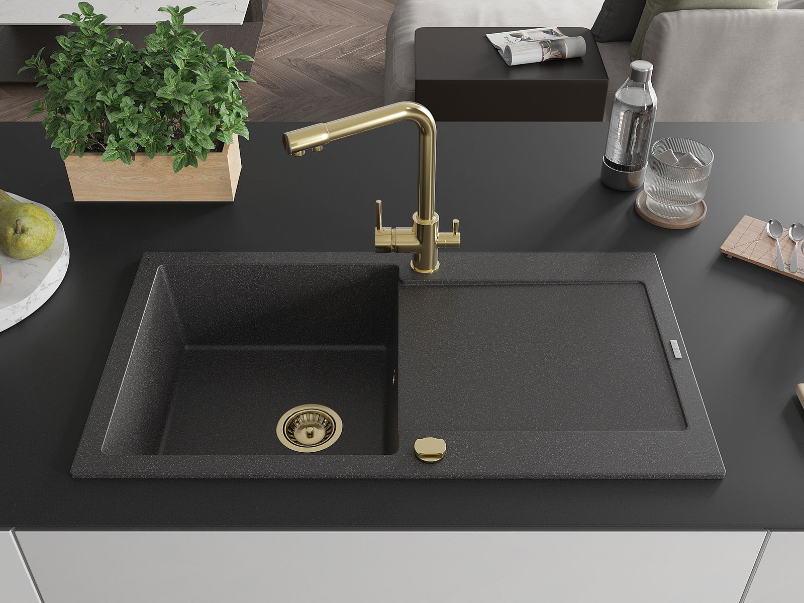 Zlewozmywak został wykonany z wysokiej jakości granitu. Stanowi eleganckie, a przede wszystkim praktyczne uzupełnienie każdej kuchni, niezależnie od jej stylu. Wysoka jakość oraz trwałość granitu zapewniają wieloletnie użytkowanie.
