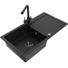 Mexen Leo zlewozmywak granitowy 1-komorowy z ociekaczem i baterią kuchenną Duero, czarny nakrapiany - 6501-76-671600-70-B